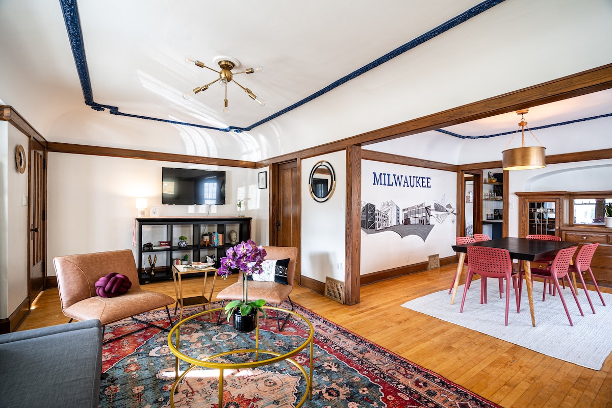 Willkommen zu deinem Milwaukee-Kurzurlaub! In der Gegend von Bay View bist du nur wenige Gehminuten von den besten Farm-to-Table-Restaurants, Musik-Clubs, Kunstmessen und Craftbier-Brauereien der Stadt entfernt. Nicht nur das, sondern auch die Strände des Lake Michigan, der Miller Park und die Innenstadt sind nur eine kurze Autofahrt entfernt. Die Lage ist ideal. Die Unterkunft wurde mit einem Mittleren-Westen-Feeling der 70er Jahre geschaffen, mit holzgetäfelten Möbelstücken und Mod-Design. Sie bietet auch eine riesige Küche und einen Garten mit Grill. Wir freuen uns schon sehr auf deinen Besuch!