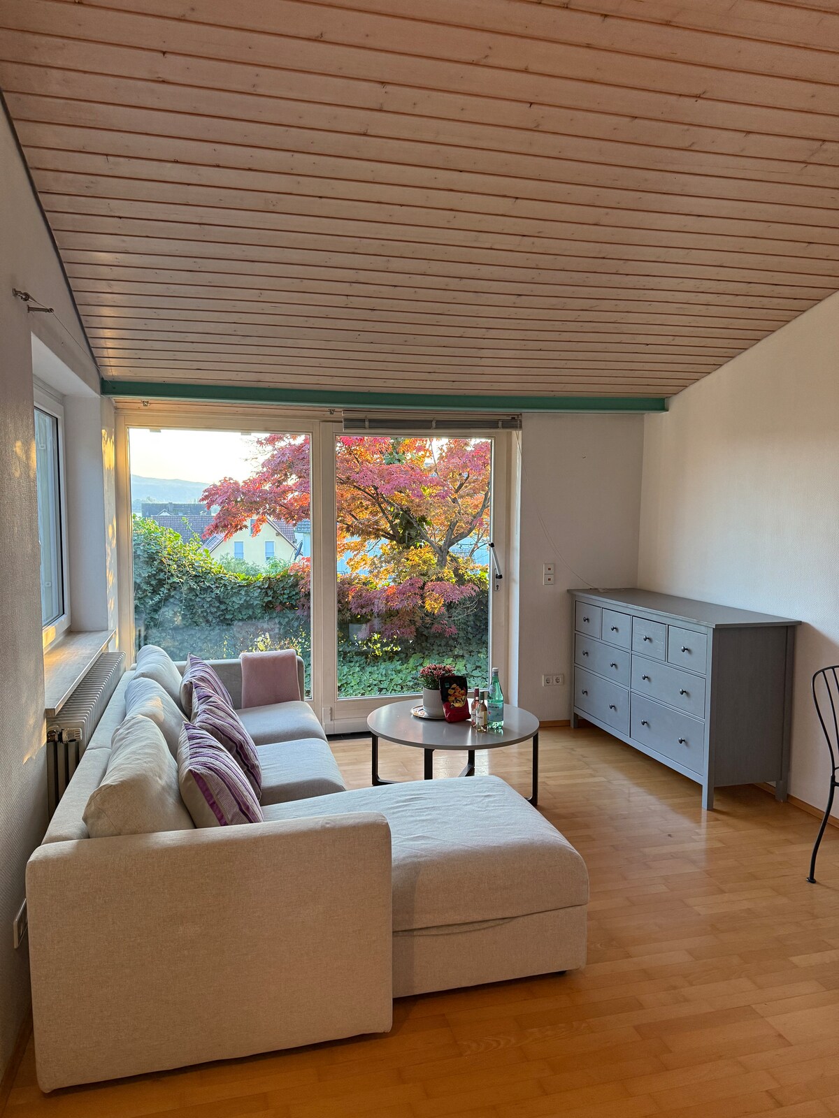 Gemütliche, kleine,urige Dachwohnung in altem Häuschen mit 3 Stockwerken,ruhige Lage mit Garten,nicht weit zum See und in die Stadt,sehr schöne Aussicht bis zu den Bergen. Bushaltestelle in die Stadt,zum See oder Bahnhof in 50m,guter Metzger,Gemüse und Bäcker in 200m Entfernung. Bei Bedarf kann man ein Fahrrad oder Kanu ausleihen. Parkplatz direkt vor dem Haus.