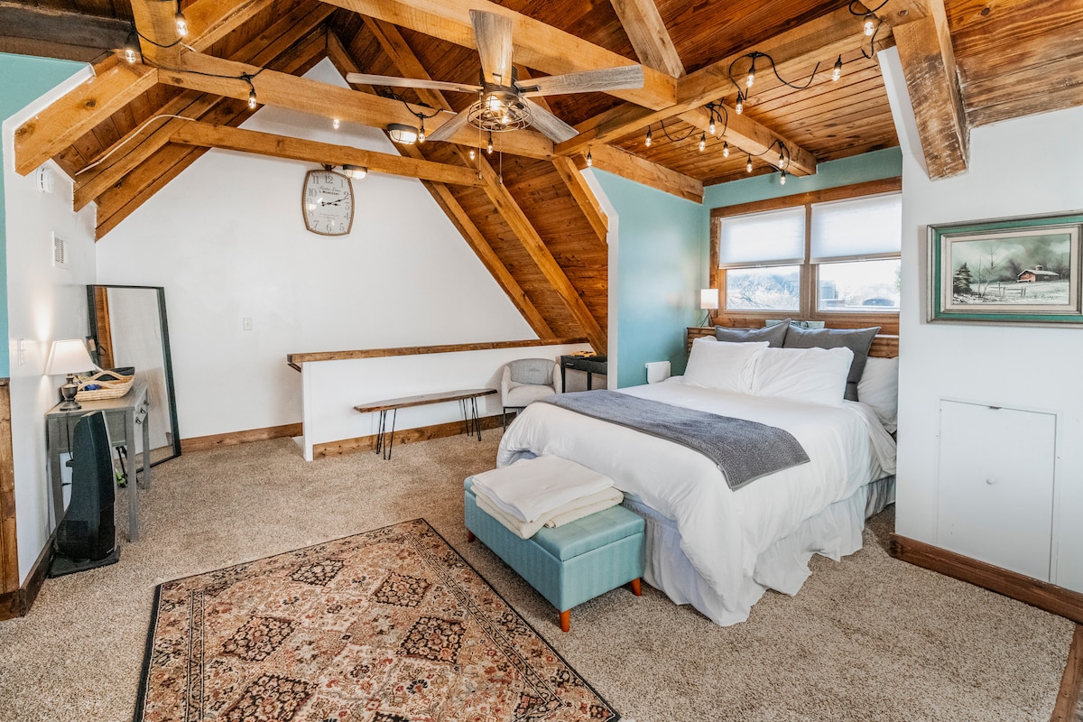 Dieser Ort ist unschlagbar! In der Innenstadt von Nashville, Indiana, findest du über all den Einkaufsmöglichkeiten diese moderne Wohnung im 2. Stock, die wirklich ein verstecktes Juwel ist. Nur wenige Minuten vom Brown County Music Veranstaltungsort entfernt. Du wirst dich wie zu Hause fühlen mit einer voll ausgestatteten Küche, einem Balkon mit malerischer Aussicht, einem Gasgrill und einem privaten Eingang. Die gesamte Etage gehört dir, um sie zu genießen. Das beste Merkmal ist vielleicht die übergroße Master-Suite mit eigenem Sitzbereich. Das Wohnzimmer bietet auch ein Sofa im Futon-Stil, also bring ein oder zwei Freunde mit!