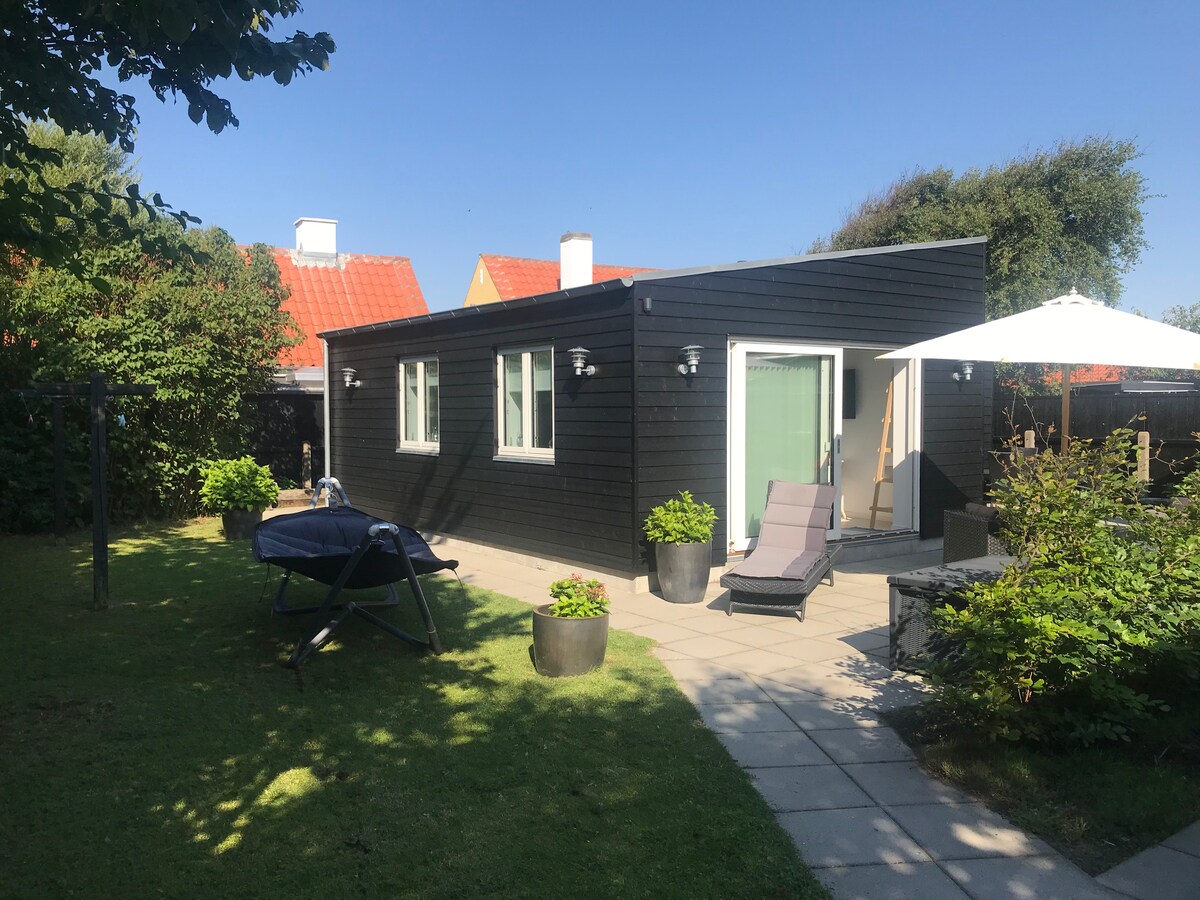 Schönes helles Nebengebäude mit eigenem Eingang und Terrasse, in ruhiger Umgebung nur wenige Gehminuten von Natur, Strand, Stadt und Hafen entfernt. Der Anbau ist 35 m2 ideal für Paare. (Option für ein kleines Kind auf dem ausklappbaren Sofa.) Beinhaltet Schlafzimmer, Badezimmer mit Dusche, Wohnzimmer und Küche in einem. Private Terrasse mit Grill. Das Haus ist Nichtraucher. Haustiere nicht erlaubt.