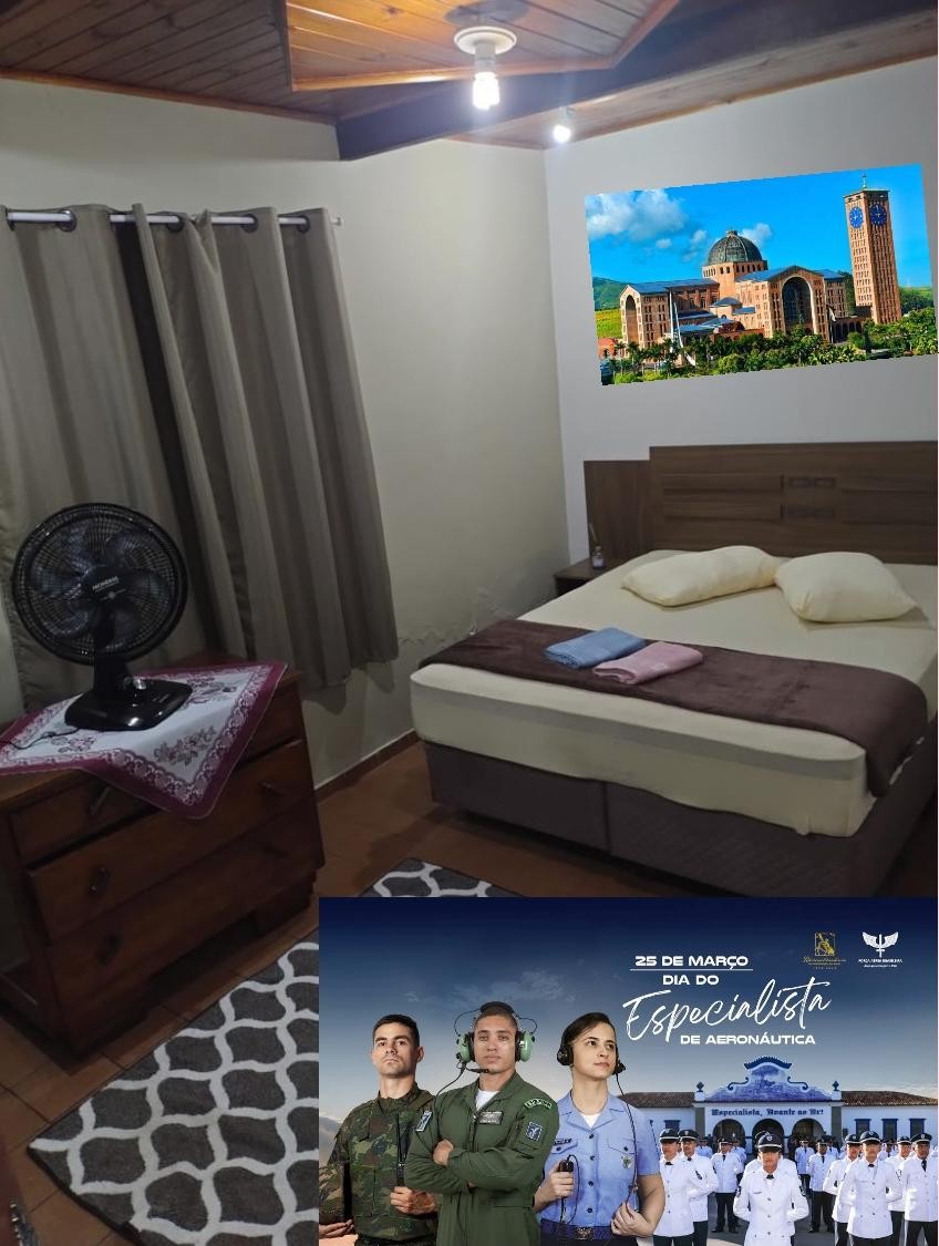 Bairro seguro, entrada independente. Cozinha equipada, um quarto com ventilador de teto. Preço anunciado para 2 hóspedes, o que exceder, R$ 40,00 por pessoa/dia a mais, até mais 2. NÃO fornecemos ROUPAS de CAMA (fronhas e lençóis) NEM de BANHO. Temos travesseiros e cobertores. Dista da Basílica NS Aparecida 7 km, 30 km da Canção Nova, 2 km da casa de Frei Galvão e 2,5 km da Igreja de Frei Galvão e EEar. Perto de supermercado, padaria, farmácias, banco e outros serviços.