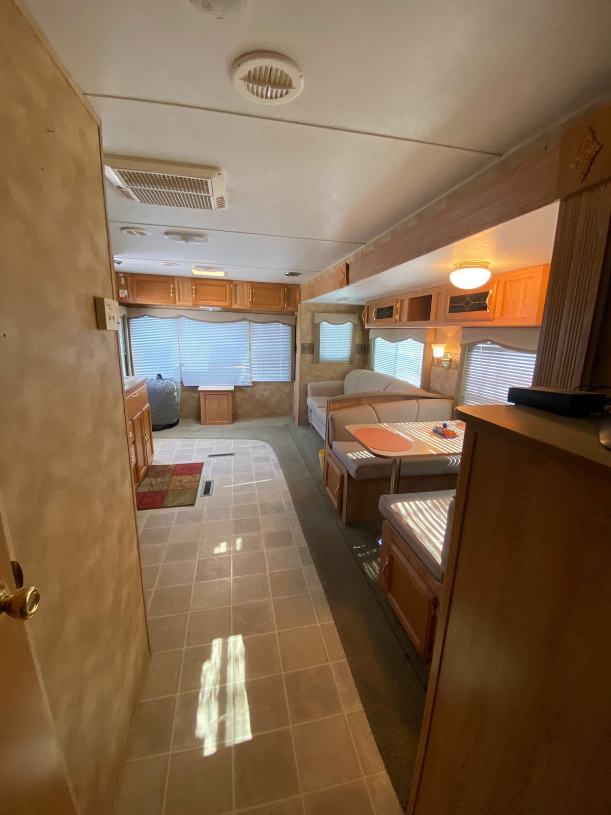 2020 32-Fuß-Camping-Anhänger, mit Wohnraum-Ausfahrvorrichtung, günstig in der Nähe des Zentrums von Nogales gelegen. Riesige schattenspendende Bäume laden zum Entspannen im Freien ein. Kurze Wanderung zum spektakulären Panorama-Aussichtspunkt bei Sonnenuntergang auf dem Hügel hinter der Kirche.
