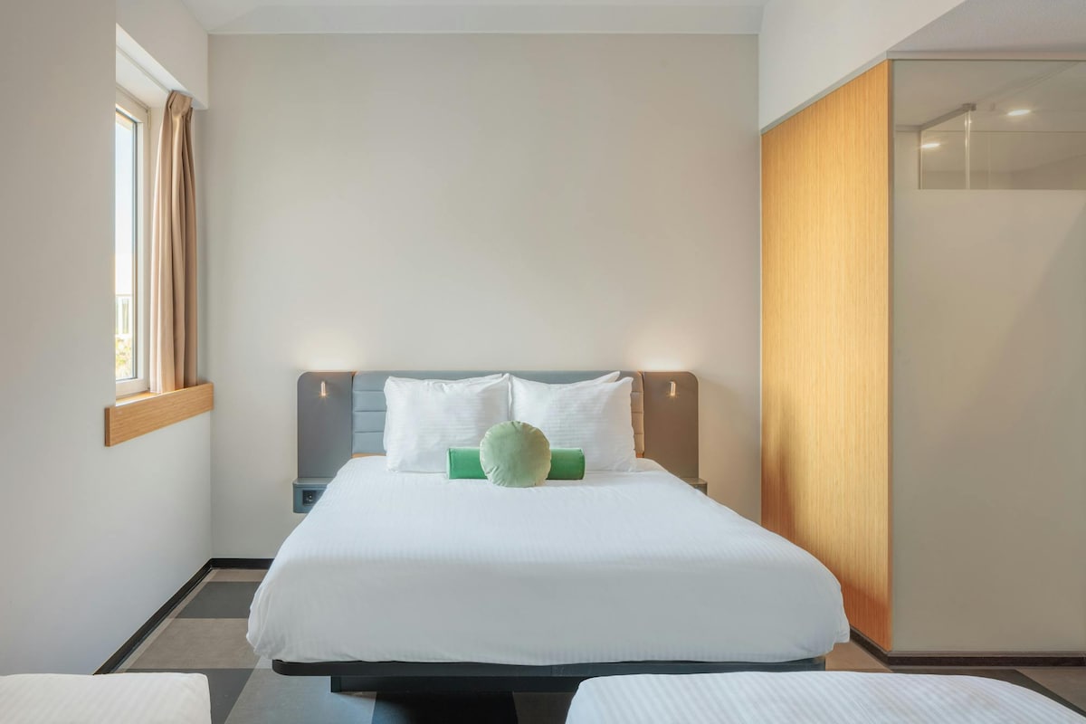 Introducing Maxhotel Amsterdam Airport Schiphol, where cozy comfort meets ultimate convenience! The small double room is thoughtfully designed and features a private bathroom with a shower, air conditioning, complimentary Wi-Fi, a TV, a small desk, and a hairdryer. Whether you're visiting Amsterdam for sightseeing or traveling for business, Maxhotel Amsterdam Airport Schiphol offers the perfect accommodation for a restful stay.