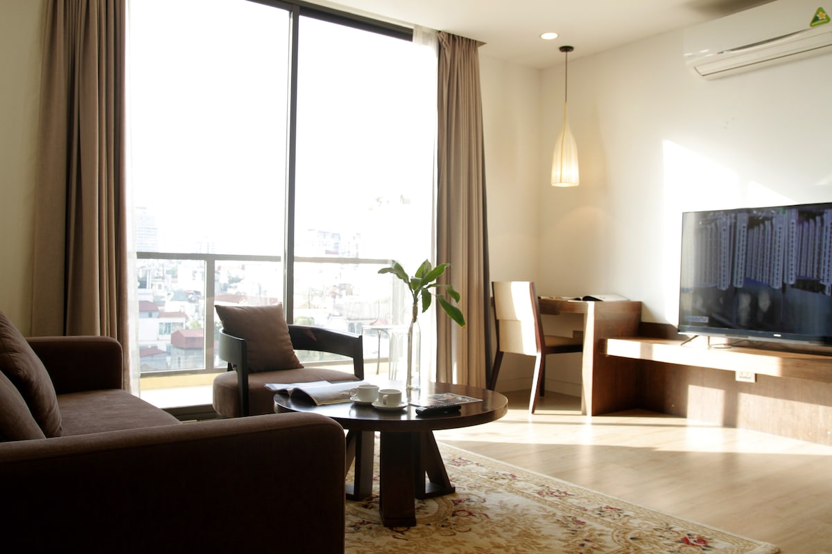 Welcome to MAY RESIDENCE, your perfect Hanoi homebase! - 800m to Hanoi Opera House, 1500m to Old Quarter. All historic and cultural sites of Hanoi are within a distance of 3km. - Surrounded by numerous good restaurants, street food, supermarkets, groceries, banks and other service shops. - Large elevator, luggage dropping, parking for motorbikes, rooftop garden with laundry room and kitchenette for outdoor dinning. - Spacious with 2 balconies apartment, stunning city view. - Tranquil and safe.
