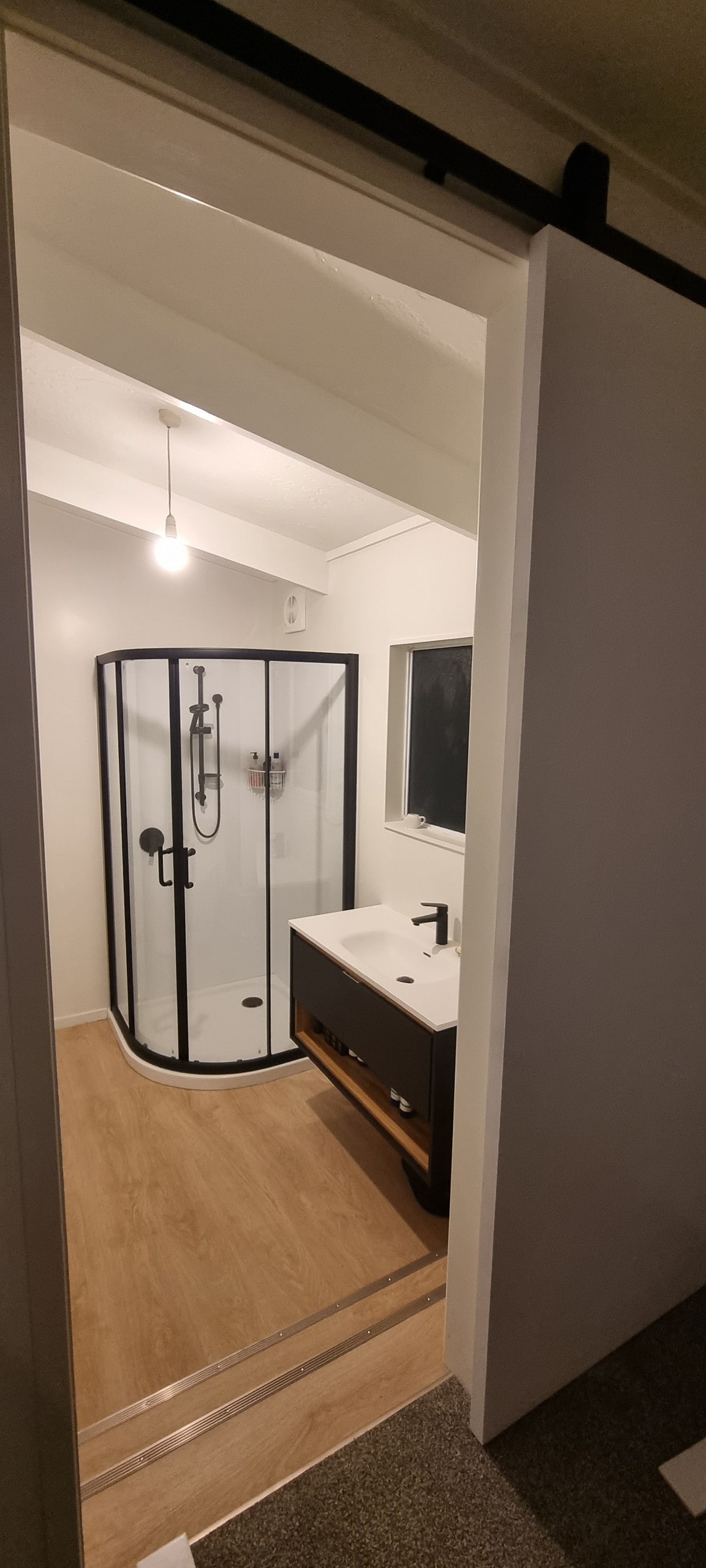 Ein moderner Rückzugsort auf dem Land mit Whirlpool und Panoramablick. Dieses moderne Tiny House mit 1 Bett, 1 Bad, bietet eine perfekte Mischung aus modernem Luxus und ländlichem Leben für Paare oder Alleinreisende. Gut ausgestattete Küche mit Induktionsherd, Backofen, Geschirrspüler, Waschbecken, Kühlschrank und Gefrierschrank. Tritt nach draußen auf deine private Terrasse mit Holz-Whirlpool, Sitzgelegenheiten im Freien und freiem Blick auf die umliegenden Felder. Das Badezimmer verfügt über eine ebenerdige Dusche und eine Waschmaschine.