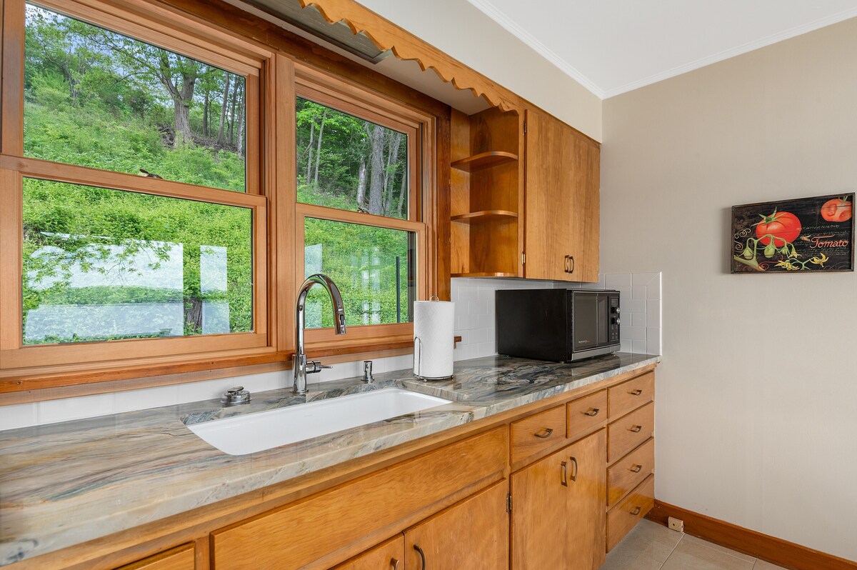 Das Tree of Life River Retreat liegt 1½ Meilen nördlich von Keokuk, eingebettet auf einer Klippe mit Blick auf den Mississippi River, in einer gemütlichen, privaten, begehbaren unteren Ebene (mit Gastgebern, die darüber wohnen). Es gibt ein privates Schlafzimmer mit einem Queensize-Bett und einen weiteren Schlafbereich mit vier Einzelbetten, perfekt für eine Person oder eine Familie. Entspanne dich, genieße die Natur und nutze unseren großen Garten. Wir befinden uns etwa 18 Meilen von der Innenstadt von Nauvoo über die Brücke in Keokuk entfernt.