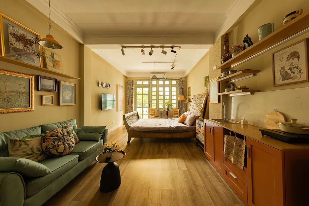 Japandi Comfort in der Nähe des Hoan Kiem-Sees – Diese 40 m² große Wohnung ist nur 5 Gehminuten vom berühmten See von Hanoi entfernt und verbindet japanischen Minimalismus mit skandinavischer Gemütlichkeit. Genieße ein helles Fenster mit Blick auf die Straße, eine voll ausgestattete Küche, Netflix und einen Waschtrockner. Umgeben von Cafés, Sehenswürdigkeiten und dem Charme der Altstadt ist es der perfekte Rückzugsort für Reisende, die Stil, Komfort und Bequemlichkeit suchen.