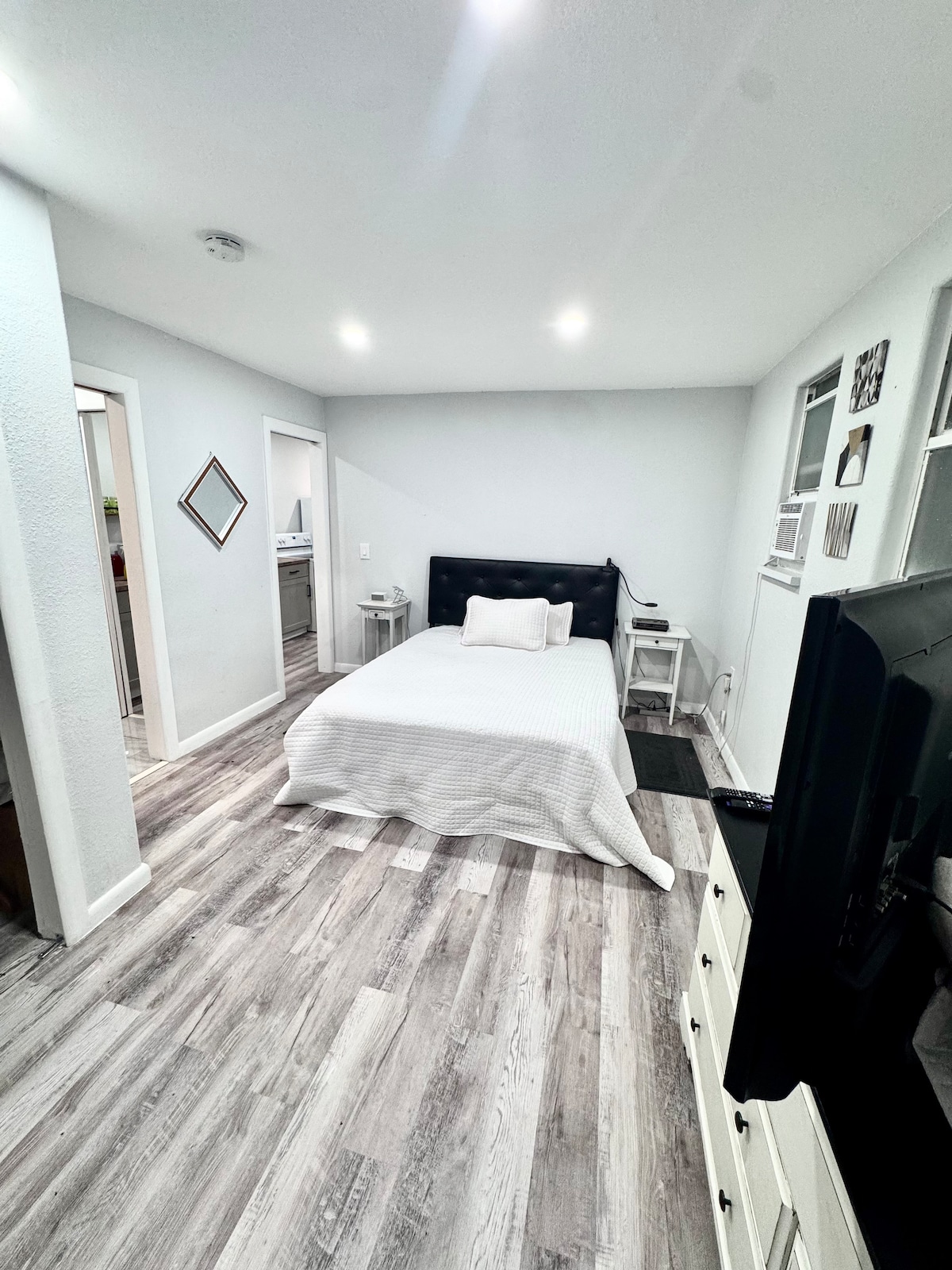Die Peaceful Oasis ist eine abgeschiedene Gästesuite mit einem Schlafzimmer und einem separaten Badezimmer, das vom Haupthaus getrennt ist. Die Suite verfügt über einen eigenen privaten Außeneingang. Das Zimmer verfügt über ein bequemes Queensize-Bett, einen Minikühlschrank, eine Mikrowelle, eine Kaffeemaschine und einen Roku-Smart-TV.