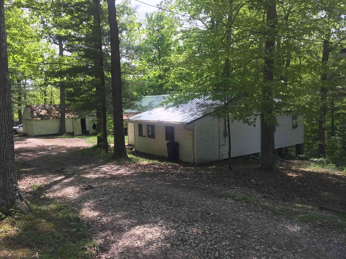 In Freeport, OH. 2 Stunden südlich von Cleveland & 1 Stunde westlich von Pittsburgh, sind wir tierfreundlich! Unsere Hütte ist geräumig, komplett möbliert und abgelegen auf 64 bewaldeten Hektar. Zwischen Clendening und Piedmont Lakes und nur wenige Minuten vom Tappan und Salt Fork State Park entfernt. Bietet Platz für bis zu 8 Personen, aber gemütlich und romantisch genug für 2. Wir haben Wanderwege, einen Bach, eine Feuerstelle im Freien und eine erstaunliche Terrasse. Wir bieten auch Jagdpakete mit vorheriger Genehmigung an. Gasgrill, rollstuhlgerecht, Geschirr und Bettwäsche werden bereitgestellt.