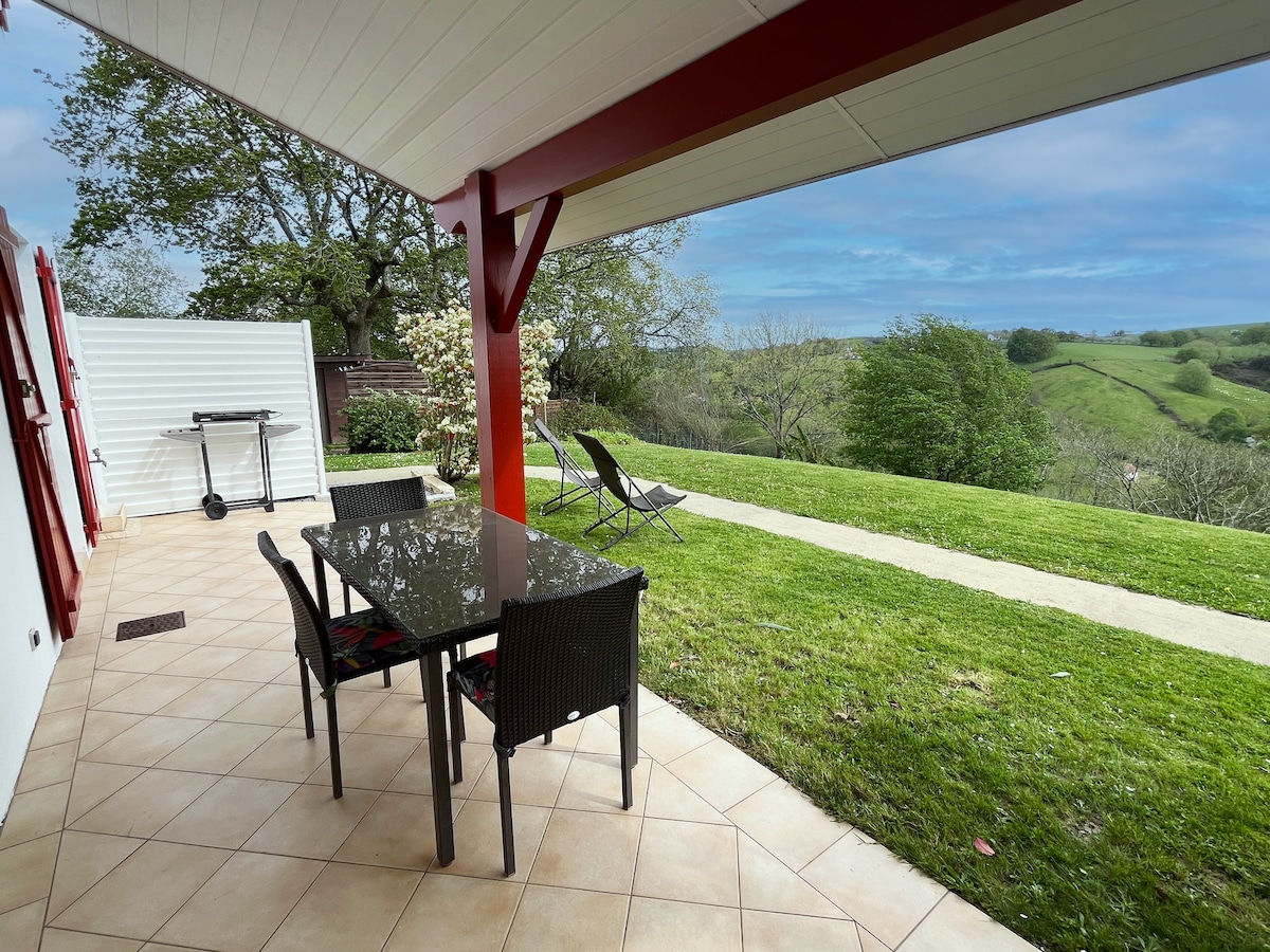 Très beau studio de 32 m2 en rez de jardin dans maison ancienne restaurée avec beaucoup de charme, avec terrasse et jardin. A 25 km des plages, à la campagne sur les hauteurs du village d'Hasparren à 5 mn du centre ville. Endroit très apaisant avec magnifique vue sur les montagnes environnantes ( La Rhune, les monts Ursuya, Baigura, Iparla, Pic d'Orhy et la chaine des Pyrénées) situé à côté du sentier scultural Marmau classé zone natura 2000, idéal pour des balades en forêts à pieds ou à VTT.