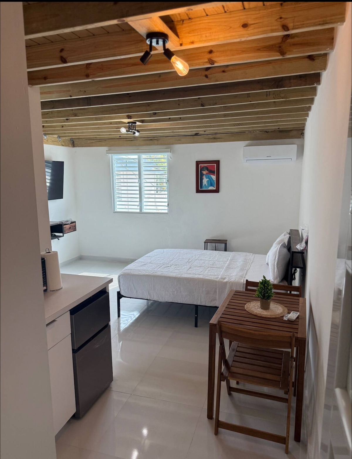 Welcome to your urban escape in the sky. This cozy and funky rooftop loft is a hidden gem right in the heart of Río Piedras—perfect for travelers seeking comfort, style, and a unique experience in the city. Enjoy a private terrace with beautiful sunset views in a modern space designed for relaxing, working, or unwinding. You’re close to everything, yet high enough to feel peaceful and tucked away.