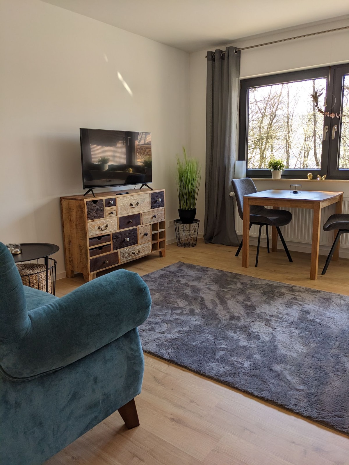 Die liebevoll eingerichtete, helle Einliegerwohnung am Ortsrand gelegen, ist keine 50m vom Naheufer und dem Barfußpfad entfernt. Sie ist ca. 64 qm groß, verfügt über einen eigenen Eingang mit eigenem Parkplatz. Ausgestattet ist sie mit einer neuen Küche, einem Schlafzimmer mit gemütlichem 1,80 Doppelbett , einem Wohn- und Esszimmer mit Fernseher, sowie einem komfortablen Bad mit bodentiefer Dusche und WC & einer kleinen Terrasse. Handtücher, Bettwäsche und Föhn stehen kostenfrei zur Verfügung.