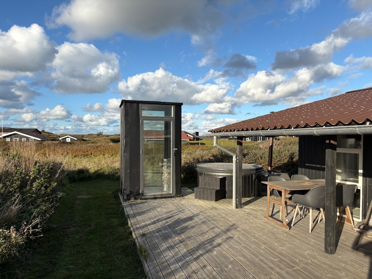 Velkommen til vores hyggelige sommerhus mellem Løkken og Lønstrup. Indrettet med stue og køkken i et. 2 værelser med dobbelt-senge og 1 med køjesenge. Derudover er der et badeværelse. På terrassen som går rundt om huset har vi vildmarksbad og sauna med en fantastisk udsigt mod klitterne. Sommerhuset ligger 150 meter fra stranden og tæt på Rubjerg knude fyr. I det hele taget ligger det i fantastisk natur. Her er ro og højt til himlen, men tæt på hyggelige Løkken og Lønstrup.