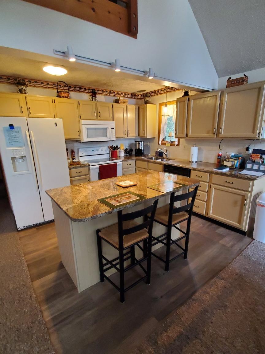 Entspanne dich stilvoll in unserem neu renovierten A-Rahmen-Chalet! Dieses gemütliche Refugium bietet bequem Platz für 4 Erwachsene mit viel Platz für mehr! Genieße Abende an der Feuerstelle im Hinterhof – alles, was du für eine erholsame Nacht unter dem Sternenhimmel brauchst, ist vorhanden. Im Inneren bietet ein geräumiger, maßgefertigter Esstisch Platz für acht Personen und bietet viel Platz zum Essen, Spielen und einfach nur die Gesellschaft des anderen zu genießen.