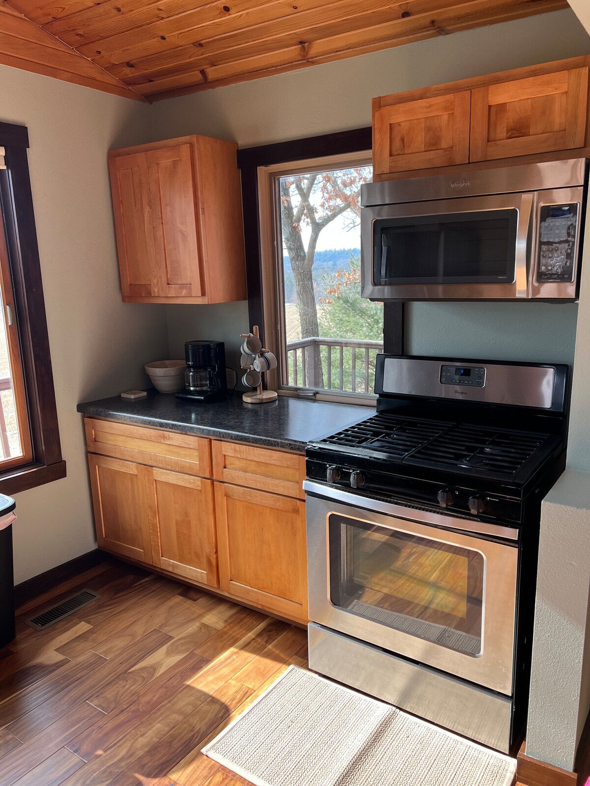 Laut Forbes macht Escape „die schönsten Tiny Houses der Welt“. Unseres liegt in der Nähe unseres Hauses über dem Black River. Es ist eine ruhige Gegend, nur wenige Minuten von der Interstate, Parks, Wanderwegen und unserer pulsierenden Innenstadt mit Cafés, Geschäften und tollen Restaurants entfernt. Genieße Privatsphäre und atemberaubende Aussicht aus den riesigen Fenstern oder der gemütlichen Liege auf der Veranda! Hirsche, Biber, Adler und mehr machen häufige Cameos, während die Jahreszeiten wechselnde Flusslandschaften und erstaunliche Sonnenuntergänge malen. *Keine Haustiere