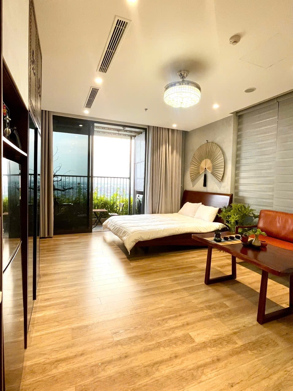 This 3-bedroom fully furnished apartment is located in Ecopark, Van Giang, Hung Yen, only 15 km from Hanoi center. The apartment has a cozy design in Japandi style. Located in the Landmark Onsen building, the apartment offers amenities such as sauna and hot mineral services (paid). Nearby amenities include Onsen hot springs, saltwater swimming pools and green parks, relaxing environment. The apartment's balcony offers beautiful and peaceful views of Swan Lake. This is the place of your healing.