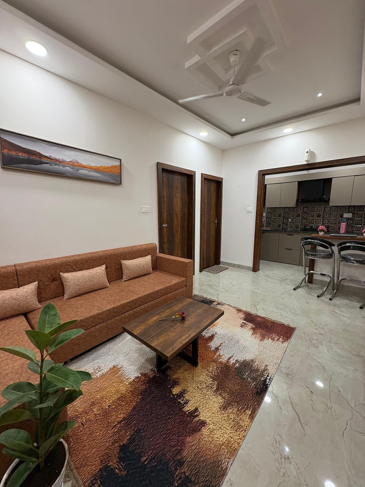 Erlebe Komfort und Luxus in unserer modernen 1BHK-Wohnung! Perfekt für Paare, Familien oder Geschäftsreisende, verfügt es über ein stilvolles Interieur, ein gemütliches Schlafzimmer und eine voll ausgestattete Küche. Das Hotel liegt in einer ruhigen Gegend mit einfachem Zugang zu Märkten, Cafés und Verkehrsmitteln. Entspanne dich, entspanne dich und fühle dich wie zuhause