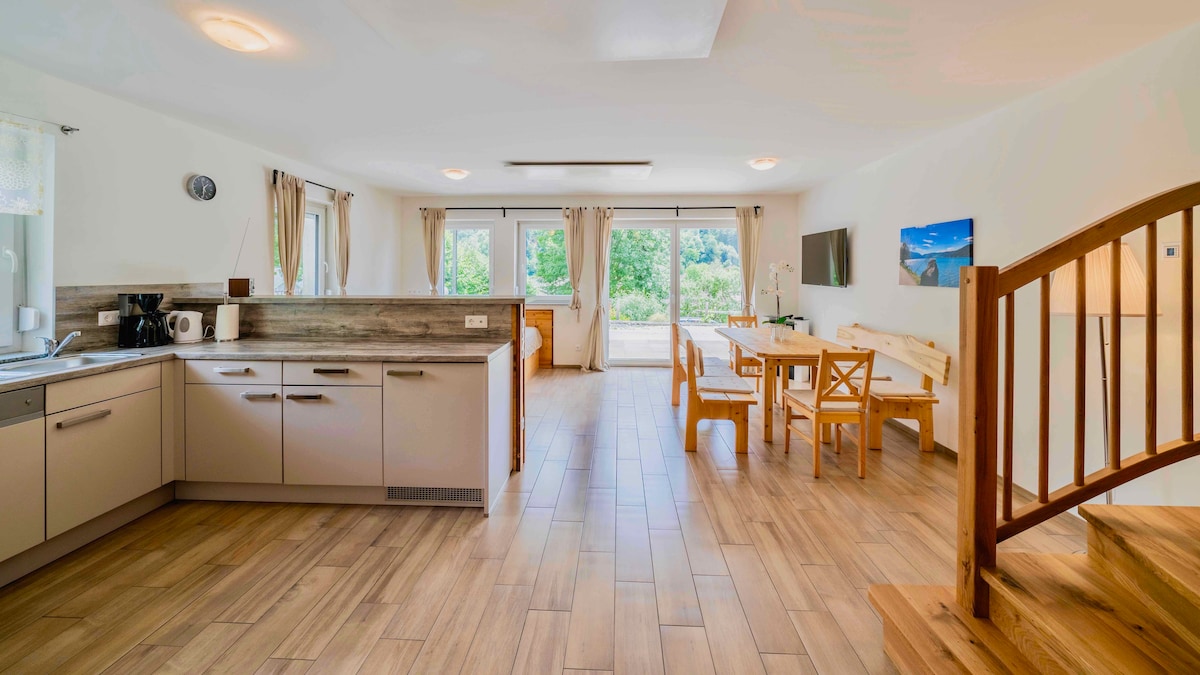 Ob du wegen unserer schönen Berge, Skifahren, Radfahren, Wandern kommst... das ist deine Unterkunft. Die Wohnung im Obergeschoss des Hauses bietet 2 Zimmer (1 mit Kingsize-Bett und ein Wohnzimmer mit einem ausziehbaren Sofa), die sich einen gemeinsamen Balkon teilen. Die Küche ist mit allen grundlegenden Kochgeschirr und Kühlschrank ausgestattet. Das geräumige Badezimmer ist mit einer Waschmaschine ausgestattet. Jeder Bedarf, den du vielleicht hast, wird erledigt. Herzlich willkommen!