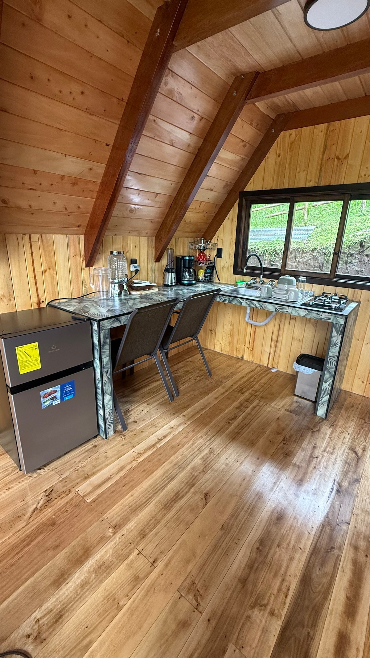 El escape ideal para parejas que buscan lujo, paz y conexión en el Chocó Andino. Jacuzzi privado, naturaleza y una experiencia diseñada para enamorar. Contamos también con sofá cama de 2 plazas para una capacidad de hasta 4 personas, también contamos con servicio de bar y caminata hacia el río.