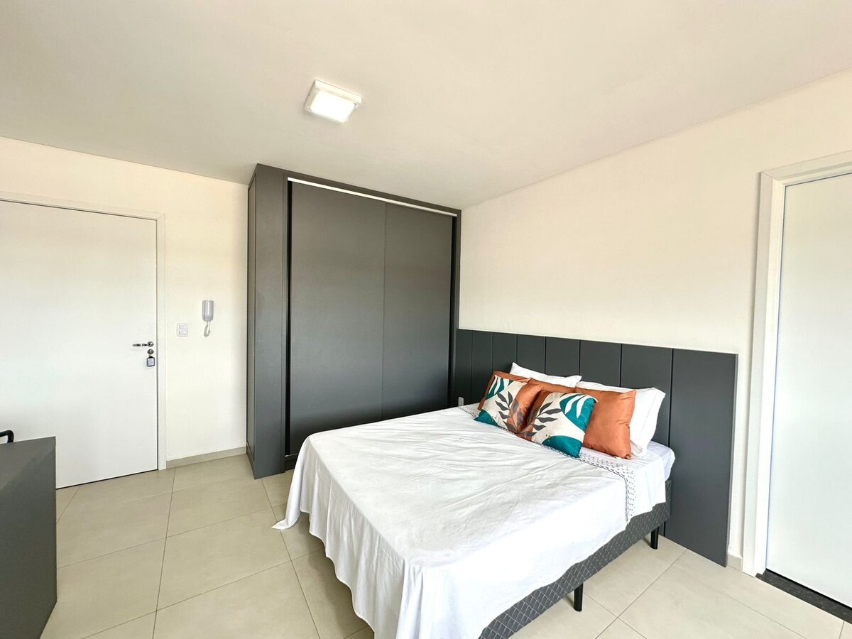 Modernes Loft im Zentrum von Guarapuava, mit Queensize-Bett, voll ausgestatteter Küche, WLAN, Smart-TV und Klimaanlage mit Heizung. In der Nähe von Restaurants, Supermärkten, Fitnessstudios und Apotheken, ideal für praktische und komfortable Aufenthalte.