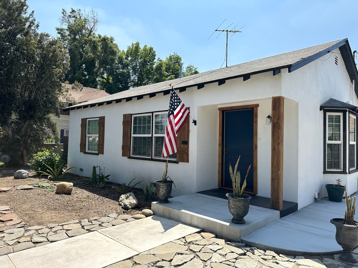Voll möbliertes Tiny House im Herzen der historischen Altstadt von San Dimas. Unser kleines Zuhause ist nur wenige Gehminuten von der Innenstadt entfernt, wo du lokale Cafés, Antiquitätenläden, historische Stätten, Restaurants und Museen findest. Dieses winzige Haus liegt direkt hinter unserem Haus, das 1894 erbaut wurde und nur wenige Kilometer von allen umliegenden Universitäten, den Ausläufern, dem Fairplex und etwa 30-45 Minuten von Disneyland und den meisten SoCal-Attraktionen entfernt liegt. Kontaktfreier/Selbst-Check-in.