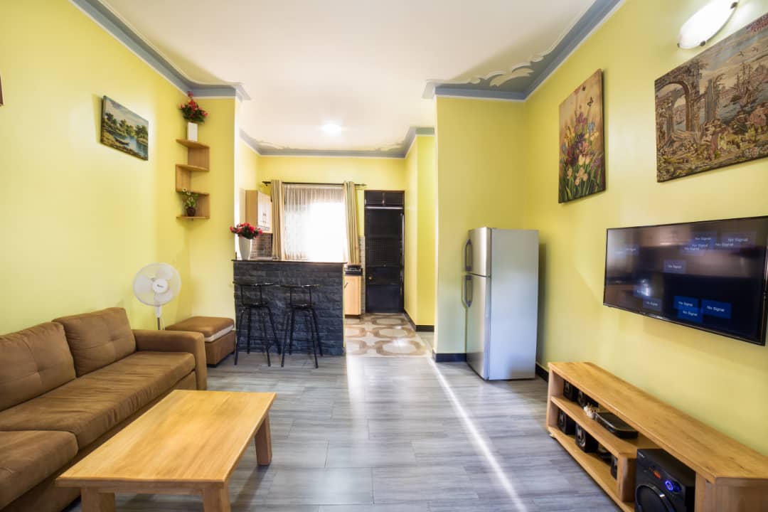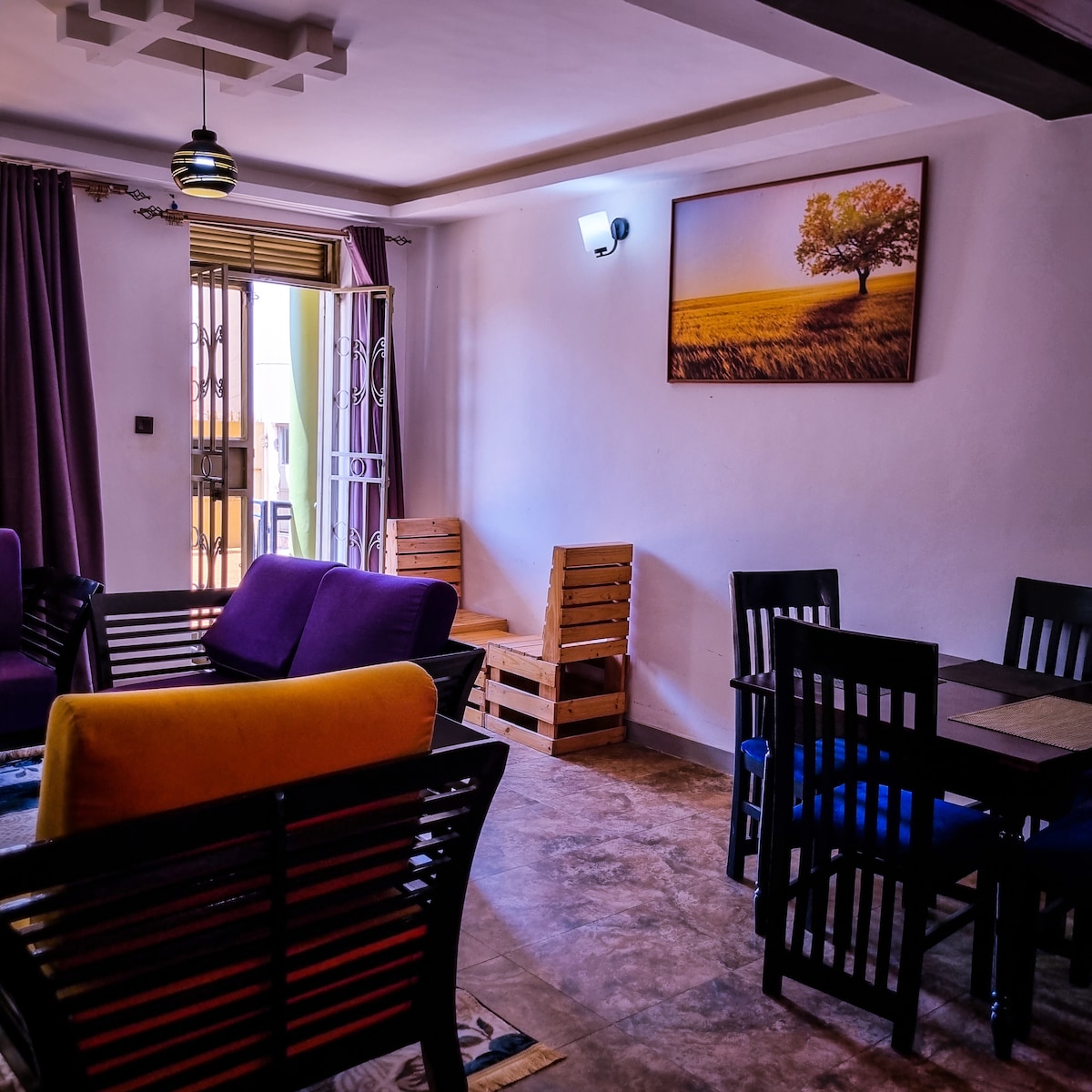 Two bedroomed apartments with private living spaces. cool breeze and calm ambiance with gardens and spacious parking spaces. It is located 5km from Jinja trading center. A fully stocked bar and restaurant are available at the premises.