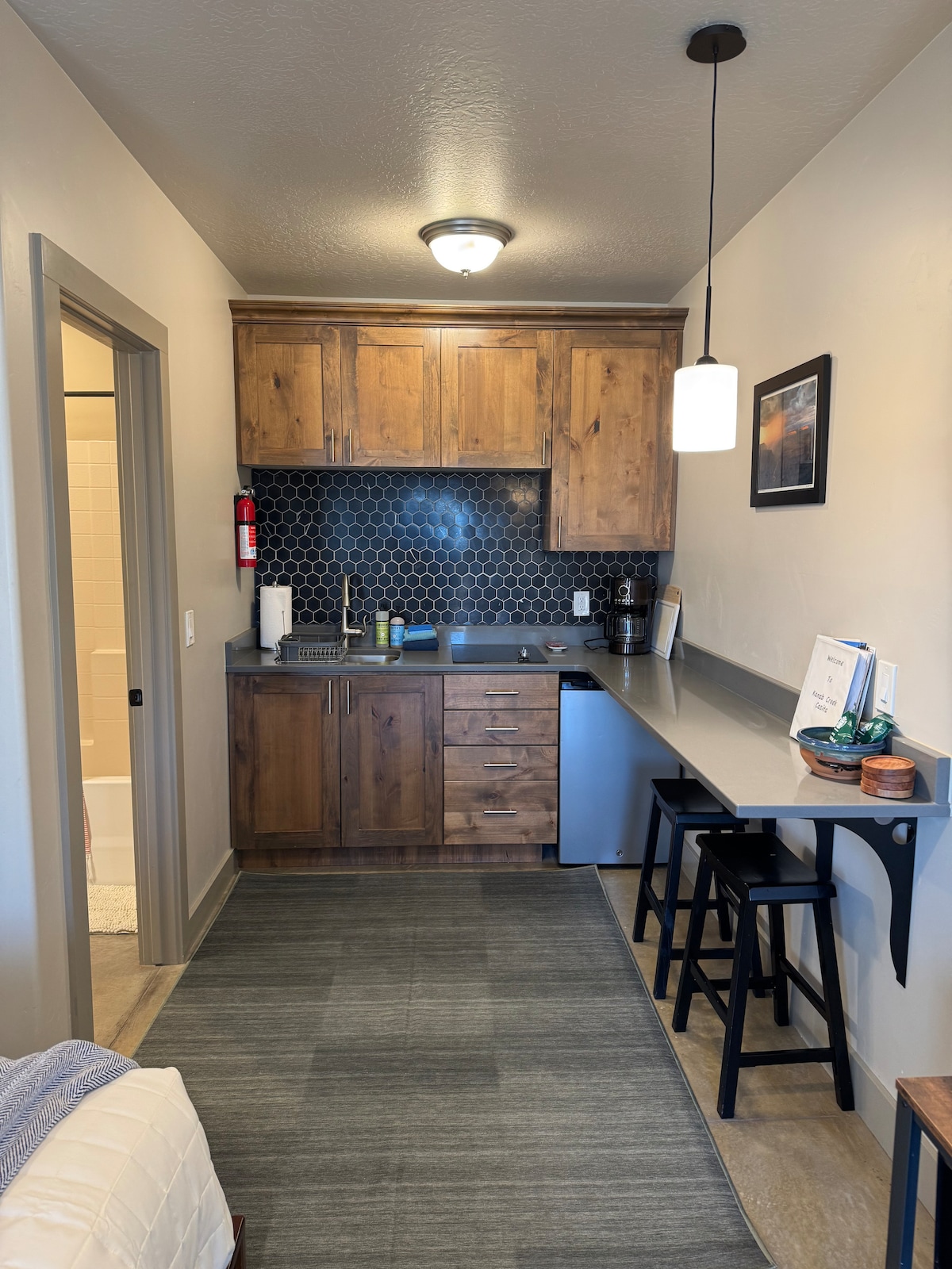 Diese kürzlich erbaute Casita befindet sich in einer ruhigen Gegend, nur 3 Meilen vom Stadtzentrum von Kanab entfernt. Sie verfügt über eine Miniküche mit reichlich Thekenfläche. Die Casita verfügt über ein Kingsize-Bett. Sie verfügt über einen Außentisch und Sitzgelegenheiten an der Küchentheke. Es gibt auch einen begehbaren Kleiderschrank mit viel Stauraum. Die Casita ist an das Haus des Eigentümers angebaut, hat aber einen eigenen Eingang. Sie ist nur einen kurzen Spaziergang von Dinosaurierspuren und Wanderwegen entfernt. Offenlegung – Gerade installierte bewegungsgesteuerte Video-Türklingel.