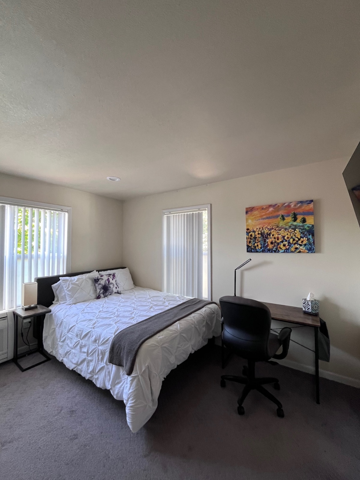 Spartan Living Suites möchte Sie einladen, bei uns in unserer Traveler's Suite zu übernachten. Diese Suite bietet feine Bettwäsche auf einem Queensize-Bett und einen elektrischen Kamin, um Ihre Suite auf der richtigen Temperatur zu halten. Kostenloser frischer Kaffee ist mit Ihrem eigenen Keurig zusammen mit Zucker und Sahne erhältlich, wenn dies gewünscht wird. Sicherheit hat Priorität, daher erhältst du einen eindeutigen Code, der nach jedem Check-out eines Gastes zu deiner Sicherheit geändert wird. Wir freuen uns auf deinen Besuch bei uns!