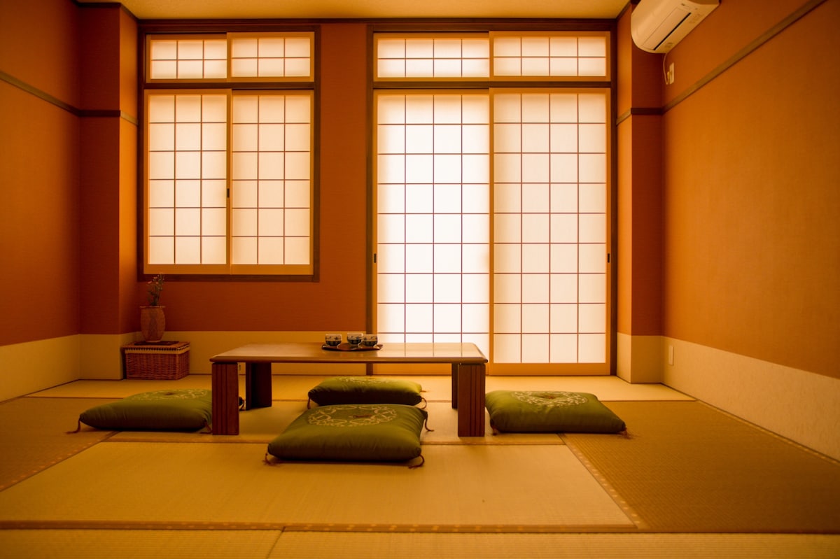 这是建造于昭和初期的京町屋,紧邻世界文化遗产二条城,非常安全的社区。该房源在2024年10月完成了翻新。不仅拥有京都匠人手工打造的舒适空间,还使用了琉球畳、地暖、TOTO浴缸、三菱、松下、日立、等家电产品,让您的住宿之旅穿梭于江户时代与现代之间,充分体验京都町屋的独特魅力。 房源介绍 两层共约101平米,3卧室2客厅2浴室2卫生间的京町屋 「1层」 客厅x2 和风客厅兼卧室x1 日式TOTO浴缸+浴室x1 淋浴室x1 洗面台、卫生间、日式传统庭园,厨房,洗衣机 「2层」 日式榻榻米卧室 x2 卫生间x1,阳台。 房源闹中取静,适合旅途中的客人暂时远离生活压力,放下疲惫,体会京都的宁静空间。 交通便利,周边有电车,地铁和巴士站 距JR二条站步行约 9分钟路程, 步行 2分钟即可抵达丸太町智惠光院站, 步行2分钟即可看到二条城, 到岚山乘JR 约9 分钟。 步行15分钟可到地铁站。 附近餐厅众多,711全家便利店,大型超市,药妆店,咖啡馆,甜品店等。