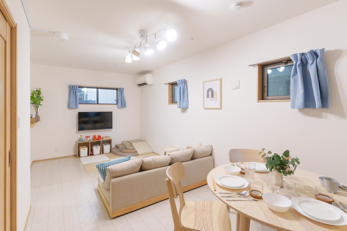名古屋で最も多様な文化が混ざり合う“大須商店街”の中心にある90㎡の貸切宿です。 アニメ・コスプレ・古着・ストリートカルチャーが共存し、さらに世界各国の飲食店や雑貨店が軒を連ねる大須は、東京の秋葉原とも大阪のアメリカ村とも違う、唯一無二のエリアです。 地下鉄・大須観音駅徒歩2分、栄エリアへも徒歩で移動でき、観光にもショッピングにも抜群の立地です。 室内は2寝室+広いリビングの90㎡で最大8名まで滞在可能。 2シャワールーム・2トイレを備えており、朝の準備が重ならず家族やグループでも快適にお過ごしいただけます。 キッチンも完備しており、大須の商店街で買った食材や世界のテイクアウトグルメを持ち帰って楽しむこともできます。 大須は老若男女・観光客・地元民が入り乱れる“カオスな活気”が魅力です。 アニメショップ、古着屋、寺院、屋台、多国籍料理店が同じ通りに並び、歩くだけで新しい発見があります。 昼はにぎやかで刺激的、夜は意外と静かに落ち着ける、メリハリのある街です。 観光だけでなく、“文化の混ざり合う街で過ごす体験”を求める方に、大須は最適な滞在先です。