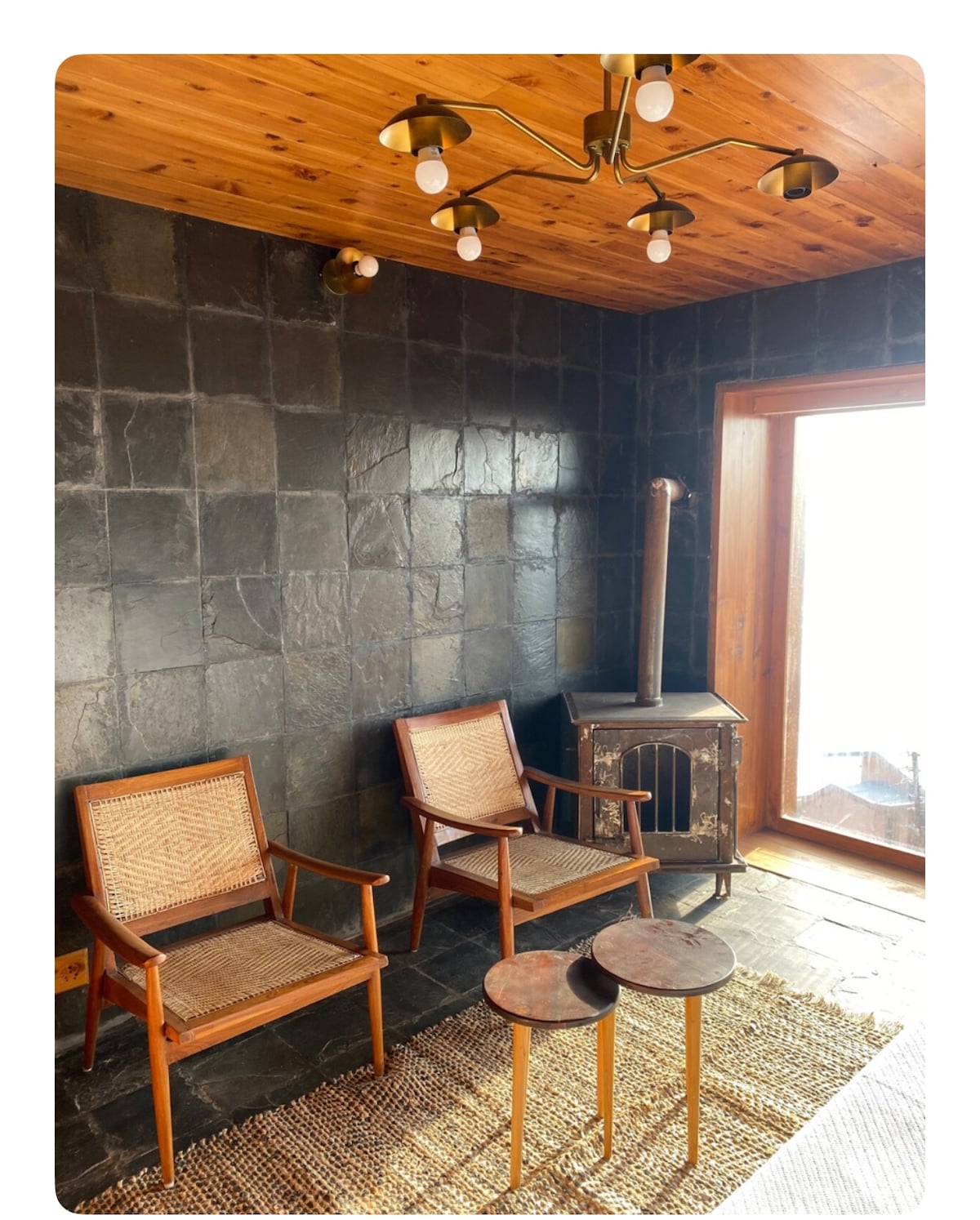 A secluded 2-bedroom villa in Chakrata, set at 7,500 ft amid deodar forests and sweeping Himalayan valleys. Its double-height glass façade frames shifting mountain hues, while sunlit, wood-and-stone interiors offer warmth and stillness. Slow mornings, cozy evenings, and nearby wonders like Tiger Falls and Budher Caves make it a serene retreat for families or friends seeking quiet and connection.