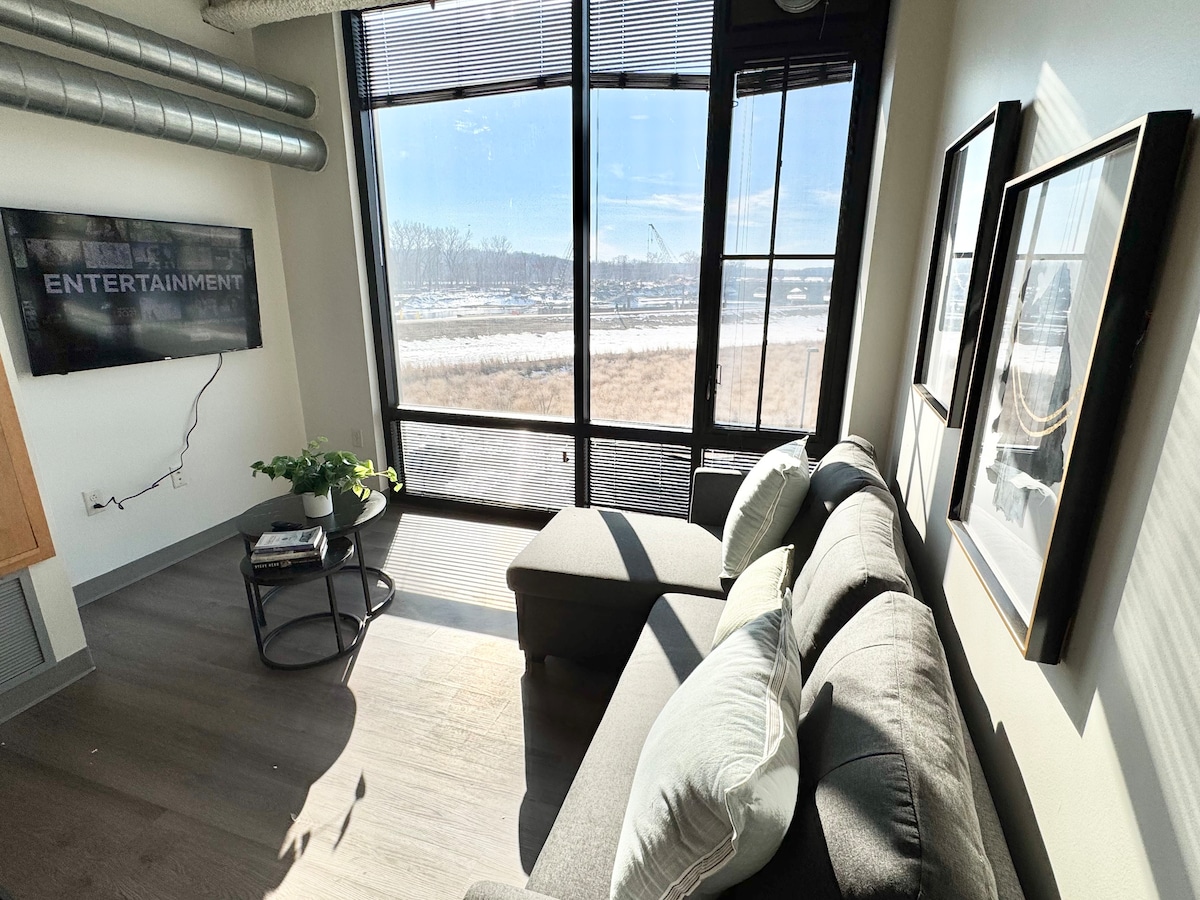 Willkommen in unserem schönen offenen Industrieloft. Wenn du unsere gemütliche Unterkunft betrittst, findest du ein sauberes, helles, gut eingerichtetes Zuhause mit vielen tollen Annehmlichkeiten, in dem du dich zurücklehnen, entspannen und deinen Aufenthalt genießen kannst. Wenn hohe Decken und schöne polierte Betonböden dein Ding sind, wirst du im Himmel sein. Stahlgeländer verleihen ihm ein echtes Industriegefühl. Alles, was für deinen Aufenthalt benötigt wird, ist gut durchdacht und einsatzbereit. Wir hoffen, dass du unser Loft genauso liebst wie wir! ***Die Gebühr für Haustiere beträgt 125 US-Dollar***