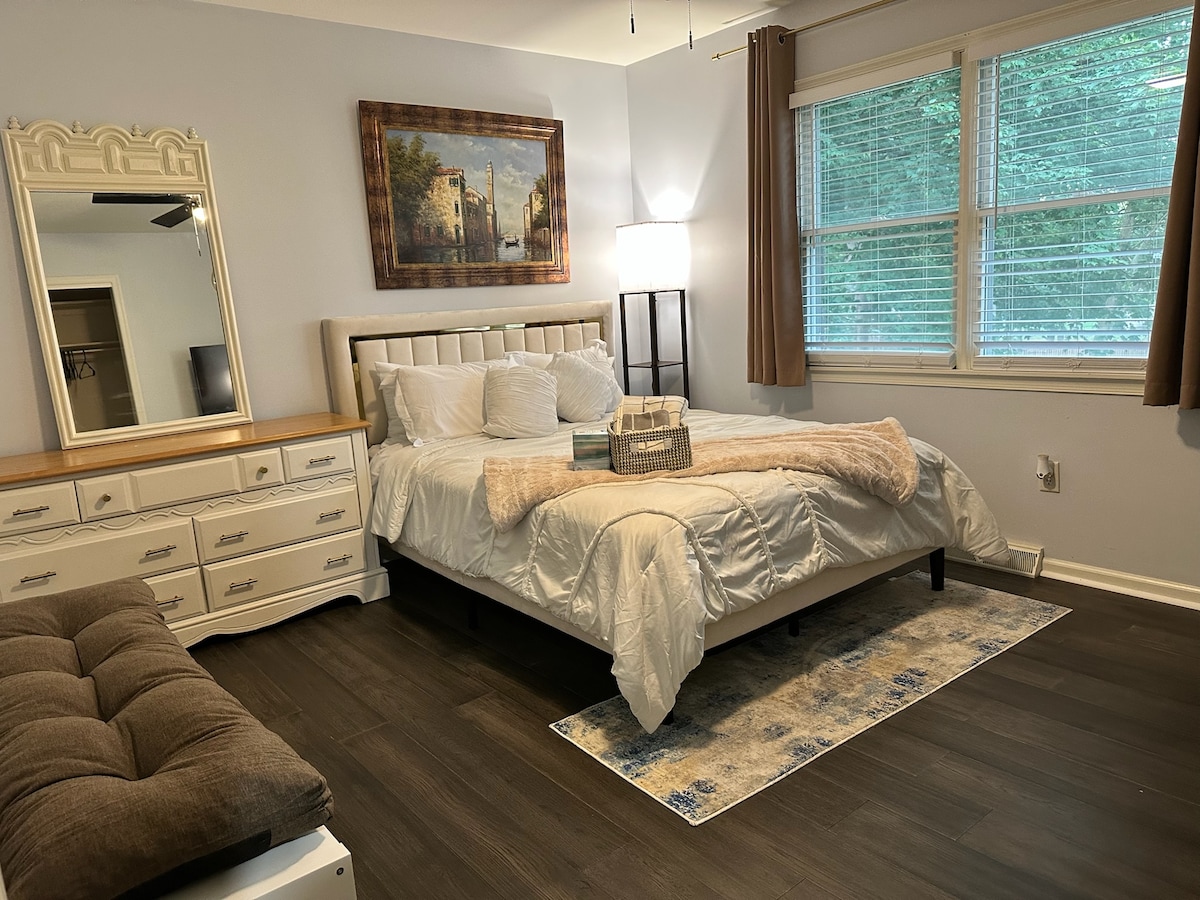 Relax with the whole family at this peaceful place to stay. This 1st floor unit, located on a gated farm, has 2 bedrooms and 1 bathroom and can sleep up to 6 people. If you enjoy the outdoors then this is the place for you. We have walking paths for you to enjoy and make sure to say hi to the animals as you walk by. Sit out on the front porch and watch the sunset or sit out by the pond and watch it there. This unit is 10 minutes from the nearest shopping. Do not enter barns or pastures.