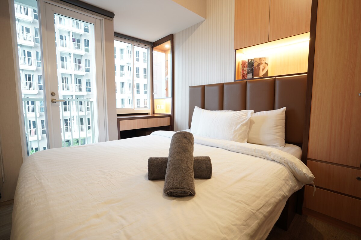 Welcome to our vibrant and playful 2-bedroom, 1-bathroom, 1 kitchen, apartment! Price doesn't include parking fee for the apartment. For Car : IDR 4000/ hour. For Motorcycle : IDR 2000/ hour. Have a staycation with us , and explore the market place with various restaurant right on the ground floor of each tower called " TOKYO HUB" and explore the advance living with us ^^