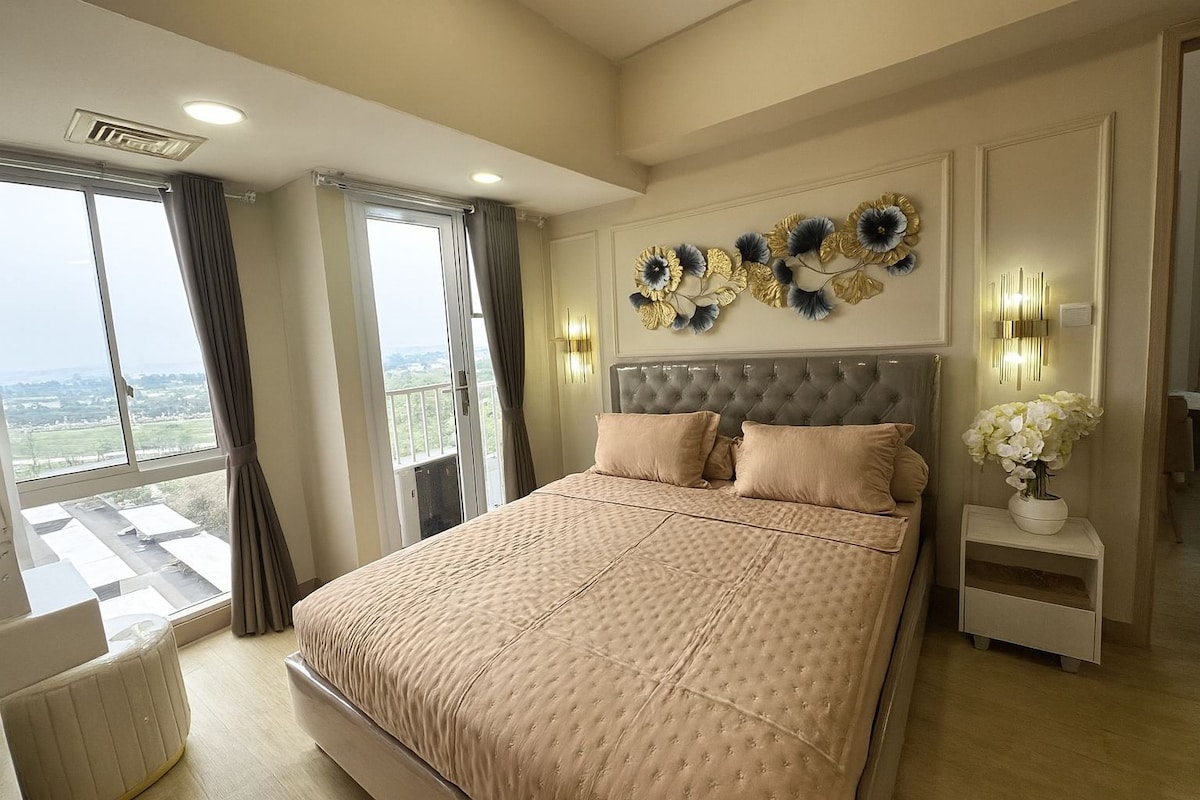 Experience a contemporary modern style apartment, in the center of various hits and tourist attractions in PIK 2. Fully designed 2 bedrooms apartments, with sleek and elegant concept, offers a lavish staying experience. Queen size bed + single bed equipped with Smart TV, open wardrobe, dedicated working table, spacious living/dining space, fast internet, stove, microwave, water heater, encapsulated in a soothing mood. Supermarket, food stalls, and sport activities are all walking distance.
