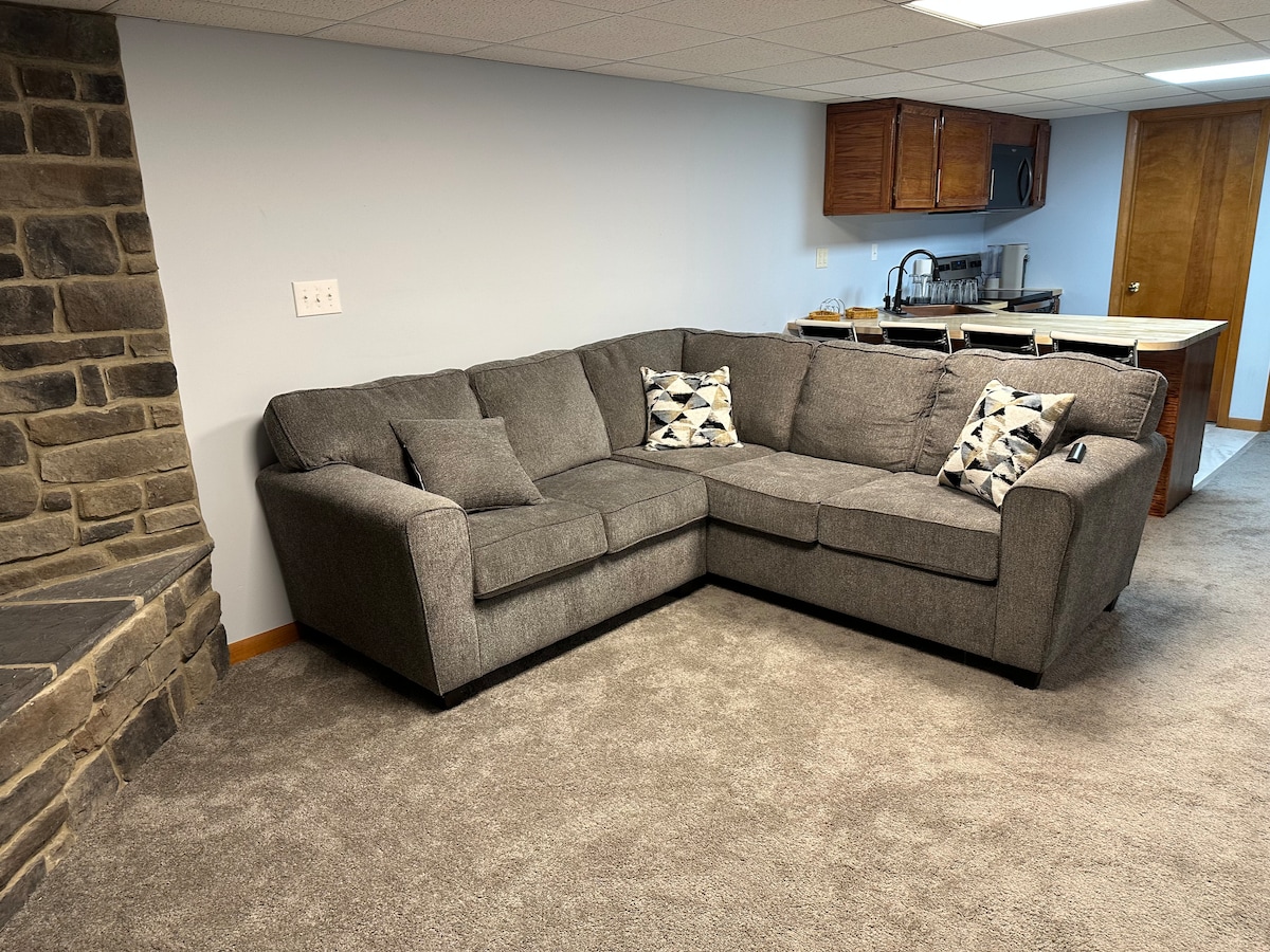 Walkout-Untergeschoss eines Privathauses in einem sicheren, vorstädtischen Viertel: 2 Schlafzimmer, 1 Badezimmer in der Nähe von Wright Patterson AFB, Soin Medical Center, Fairfield Commons Mall, Wright State University und University of Dayton. Gaskamin, TV mit Netflix und schnelles WLAN inklusive. Kostenlose Parkplätze abseits der Straße für 2–3 Autos, einer davon überdacht. Voll ausgestattete Küche und private Waschküche. Haustierkiste verfügbar, aber Haustier muss im Freien an der Leine geführt werden. Gemeinsame Feuerstelle im Freien und Pavillon für längere Aufenthalte verfügbar.