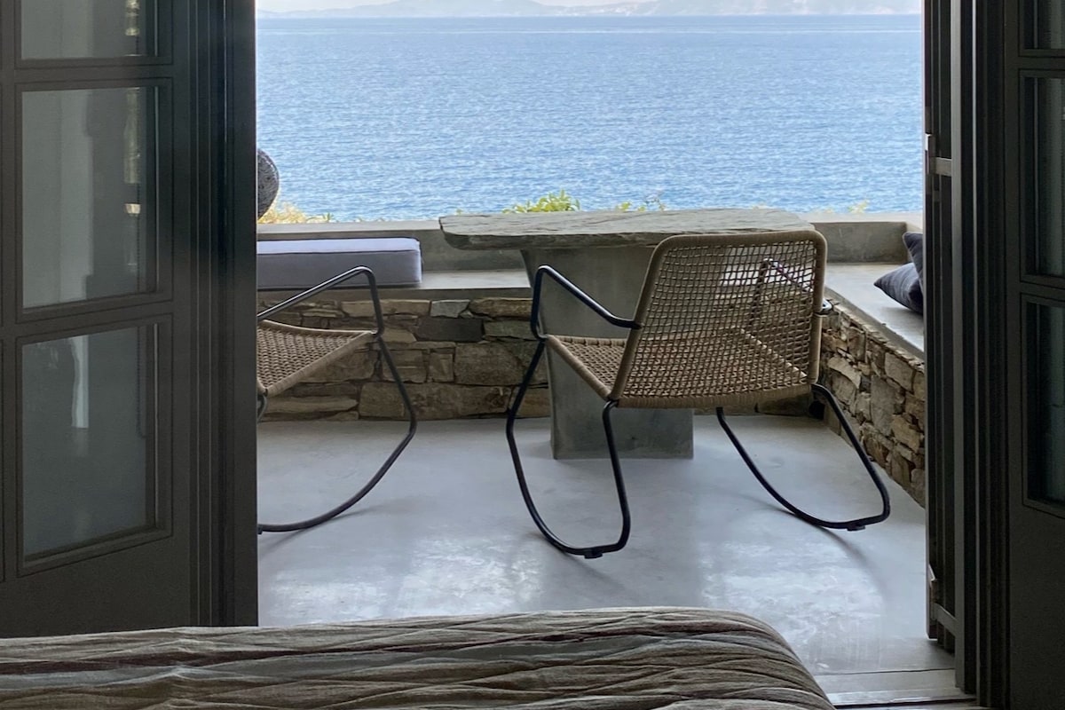 Our suite is designed with cycladic and bohemian style. It features handmade furniture and top quality fabrics and equipment. It have an infinity pool with sea salt and a small side pool. There is also a secret beach under of our suites. It is located in Megas Yialos Syros. You can also book your private chef experience with our michelin star experience owner. We are looking forward to host you!!