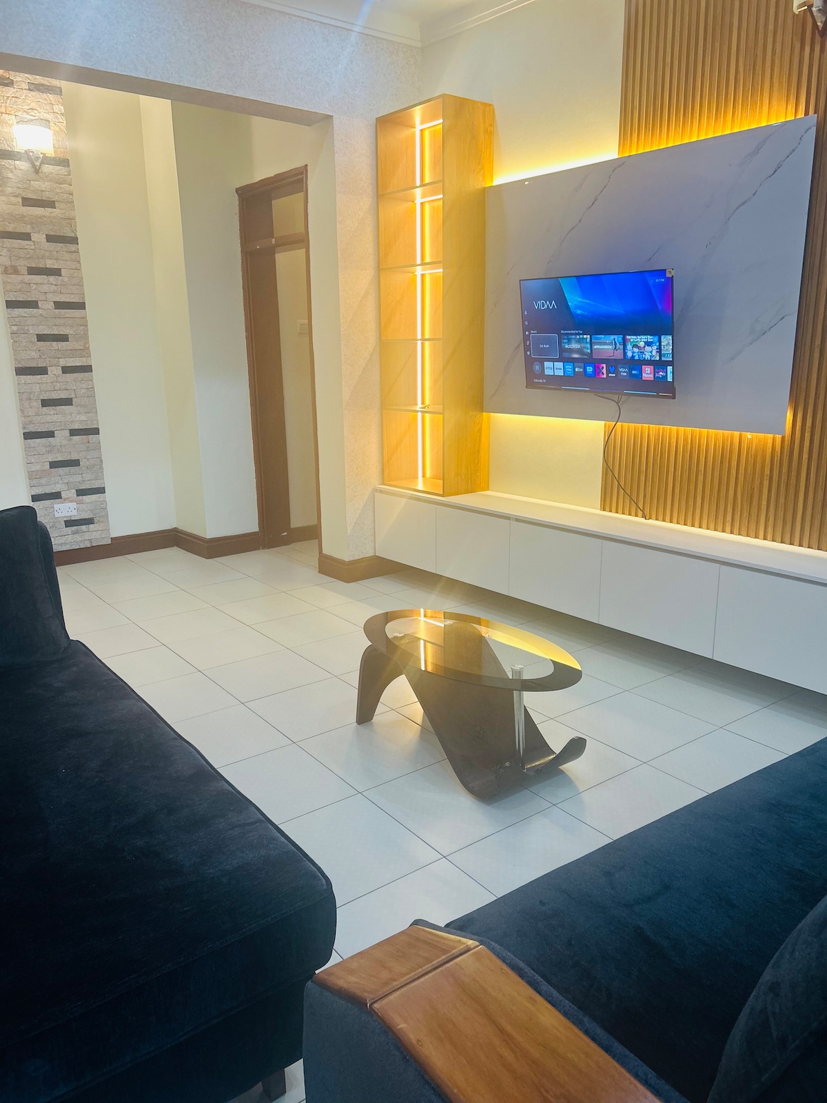 Entfliehe dieser luxuriösen Wohnung mit 1 Schlafzimmer und nur 20 Minuten vom internationalen Flughafen Entebbe entfernt. Perfekt für einen Wochenendaufenthalt und ideal für mobil arbeitende Mitarbeiter, die ein ruhiges, stilvolles Ambiente suchen. Es verfügt über ein Queensize-Bett, eine voll ausgestattete Küche, ein modernes Badezimmer, Highspeed-WLAN und einen gemütlichen Wohnbereich mit einem Smart-TV. Genieße nahtlosen Komfort, moderne Annehmlichkeiten und eine ruhige Umgebung für Arbeit oder Entspannung. Dieser elegante Rückzugsort verspricht Komfort und Ruhe für deinen Urlaub.