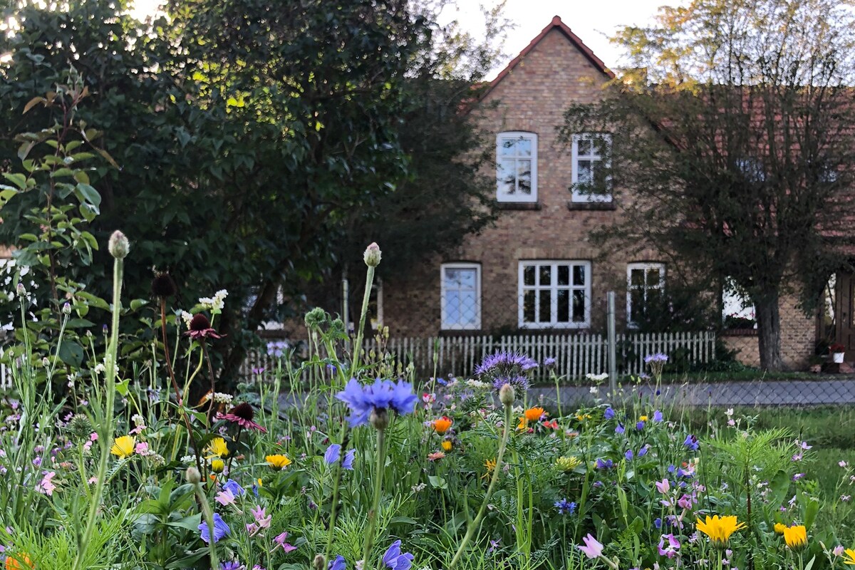 Fahr ans Meer. Mache Ferien in einem ehemaligen Schulhaus. Unser 95Jahre altes Haus ist sehr ruhig gelegen in einem kleinen Dorf auf Westrügen, einer der weniger touristischen Ecken Rügens. Wenn Du Lust auf Natur und Ruhe hast, dann bist Du bei uns genau richtig. Kleine Ausflüge nach Hiddensee, Kap Arkona oder einfach einen langen Spaziergang zum Meer und abends in der Sonne auf unserem Hof sitzen oder im Winter den Kachelofen anmachen und einen Tee genießen.