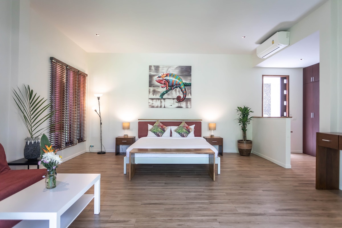 Welcome to CocoCool, Your dreamy escape hidden in a coconut oasis. Villa Alizé is a stylish, cozy retreat perfect for couples or solo travelers craving calm tropical vibes. Highlights: • Natural chlorine-free pool (Gentle on skin and Eyes) • Sauna • Equipped kitchen • Outdoor jungle-style shower • Only 4 mins from Hin Kong Beach (Motorbike) • Peaceful and quiet neighborhood • Easy on-site motorbike parking