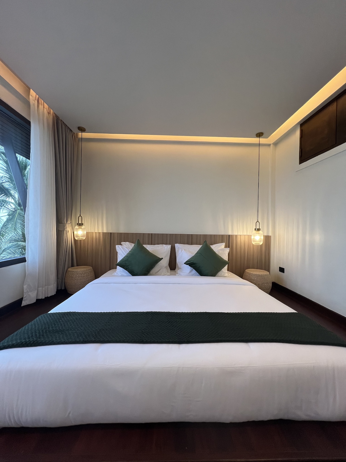 🏠Das kleine Haus befindet sich im Boon Heritage House Guesthouse. Das Zimmer ist mit natürlichen Materialien, warmen Tönen und lokalen Akzenten dekoriert. Mit Toilette, Klimaanlage, eigenem Bad, komfortabler Bettwäsche, TV, Kühlschrank und anderen wichtigen Dingen für einen erholsamen Aufenthalt. Obwohl dieses Zimmer keinen direkten Meerblick bietet, können die Gäste dennoch die Außenbereiche mit Panoramablick auf das Meer und den Sonnenuntergang genießen.