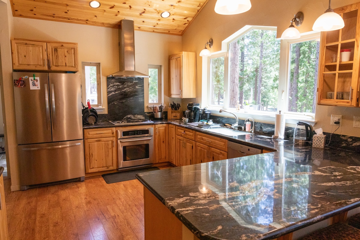 Begib dich im Lost Sierra Bungalow, einem gemütlichen Rückzugsort am Fluss, der in den 1960er Jahren mit recycelten Hölzern aus den 1800er Jahren erbaut wurde. Eingebettet, wo der Yuba River auf Haypress Creek trifft, öffnet sich dieses ruhige Refugium zum Rauschen von rauschendem Wasser und Vogelgesang. Egal, ob du Kaffee auf der Terrasse nippst, eine Mahlzeit mit Freunden zubereitest oder unter Lichterketten beobachtest, diese Hütte lädt dich ein, langsamer zu werden und dich wieder mit der Natur zu verbinden.