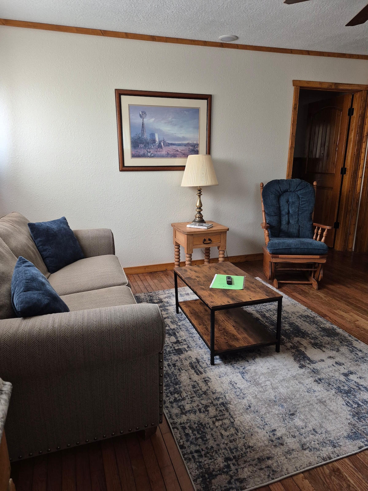 Maggies Mannhöhle ist NICHT wirklich eine Höhle, es ist eine private Suite in unserem Keller mit einer separaten Einfahrt und einem Eingang vom Haupthaus. Du wirst kaum merken, dass eine Familie über dir wohnt, wenn du dich in diesem komfortablen, modernen und einladenden Raum niederlässt – du wirst dich in dieser ländlichen Umgebung mit einfachem Zugang zur I-44 und entweder dem Lebanon, Conway oder Bennet Spring State Park wie zuhause fühlen. Entspanne dich in der Suite oder genieße unsere 50 Hektar mit Teich und Wald mit Wanderwegen.
