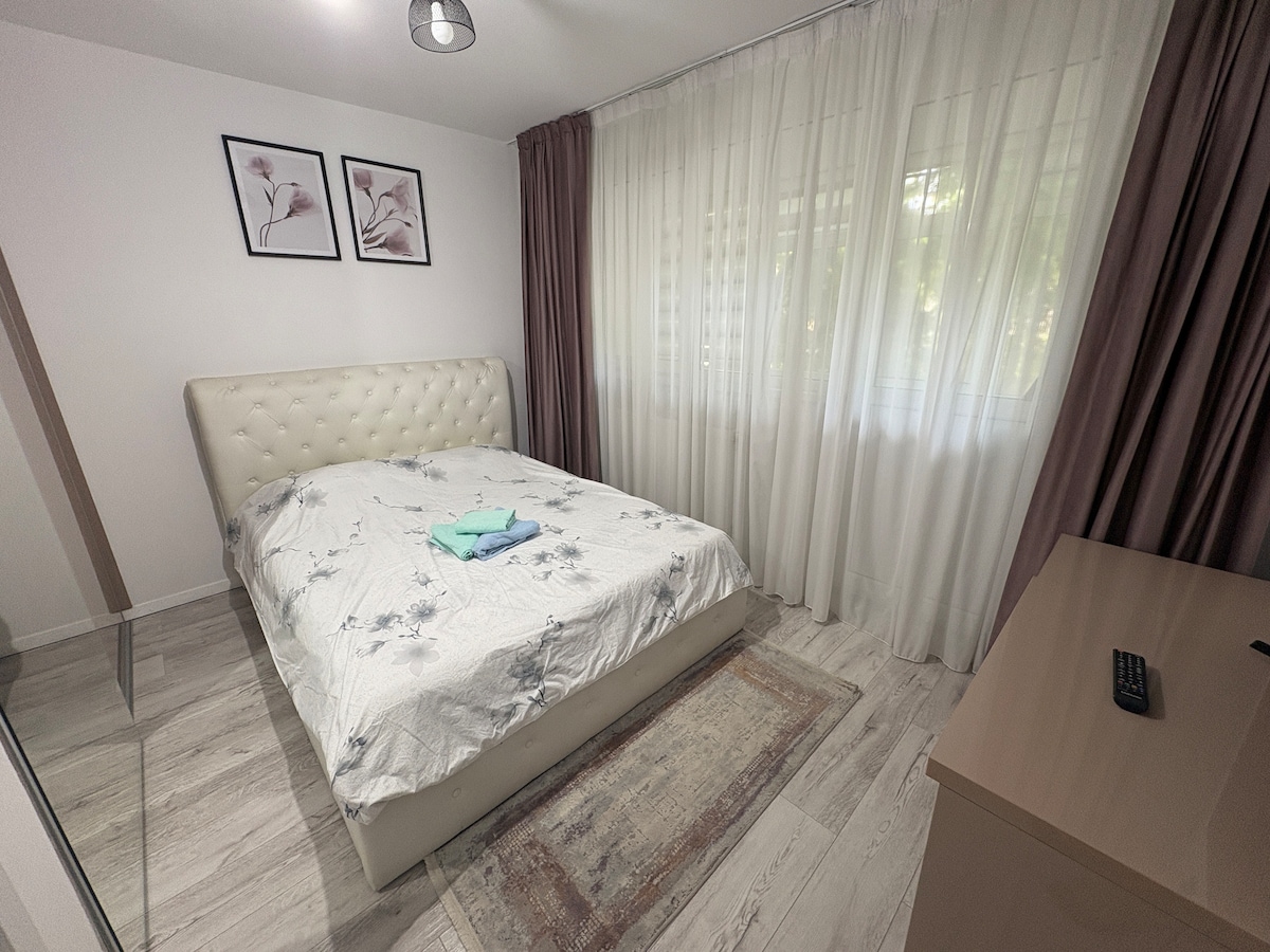 Descoperă confortul și rafinamentul acestui apartament de 2 camere, recent renovat, perfect pentru o vacanță de neuitat sau o calatorie de afaceri. Predomină nuanțele de verde smarald, creând un ambient relaxant și elegant. Apartamentul este complet mobilat și dotat cu tot necesarul pentru un sejur reusit - living cu canapea extensibilă, ideală pentru relaxare sau dormit - baie modernă cu duş, pentru clipe de răsfăț - bucătărie complet echipată, pregătită să îți satisfacă orice nevoie culinară.