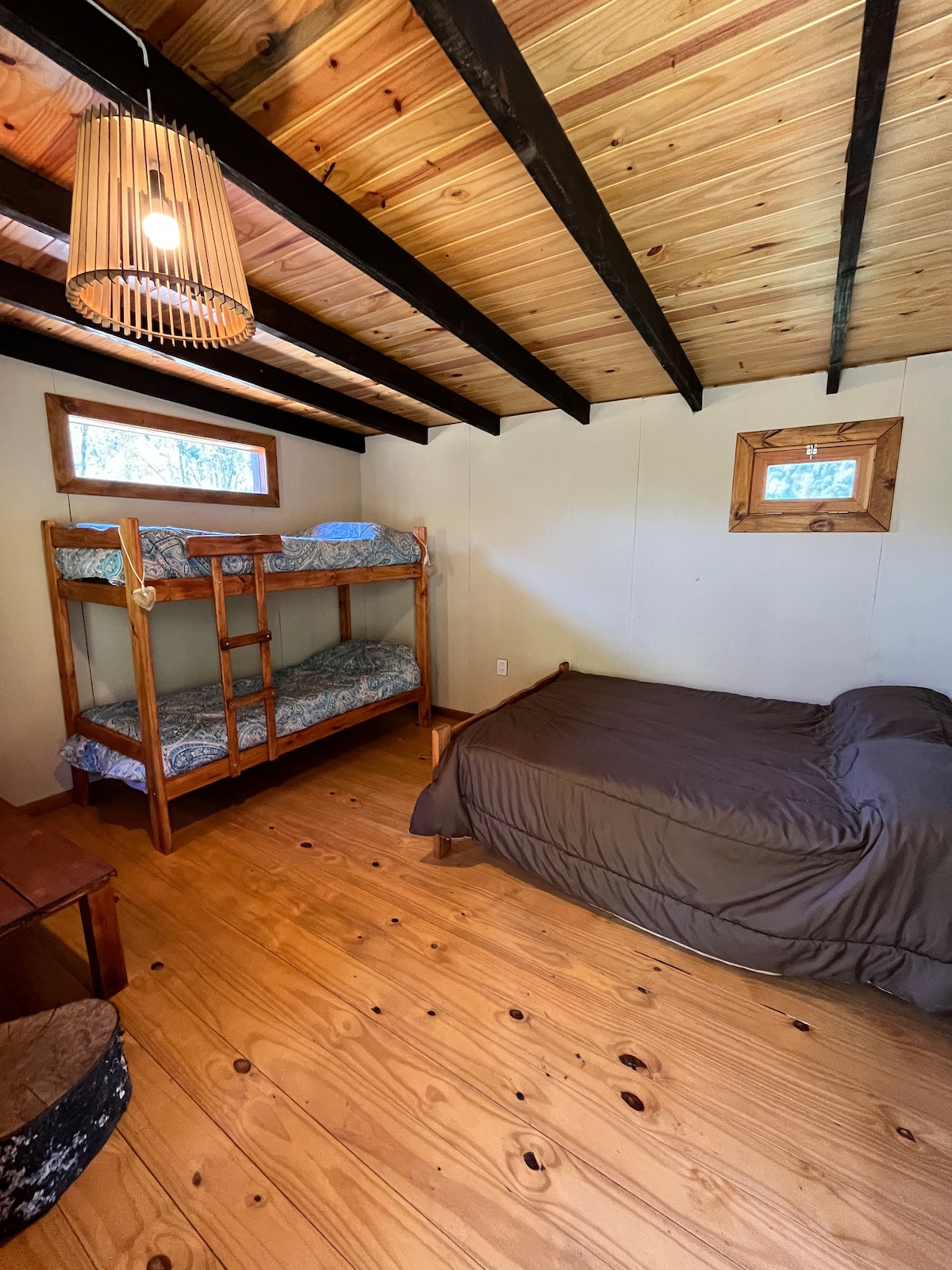 Este espacio cómodo y versátil puede alojar hasta 5 personas, con una Cama Queen Size, una Litera ideal y un Sillon Cama para familias o amigos. El Hostel Secreto ofrece más que solo alojamiento: • Áreas Comunes: Sala con sofá, Wi-Fi, televisión y cocina completamente equipada. • Espacios al Aire Libre: Amplio jardín con áreas para fogatas, parrilla y mesas al aire libre. • Naturaleza: Una vista espectacular al cerro Currumahuida y acceso a los Pozones del Río Azul.