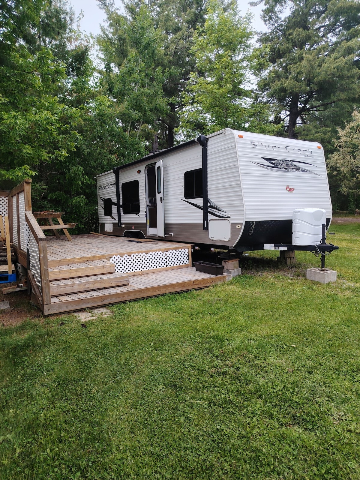 Entspanne dich mit der ganzen Familie in dieser ruhigen Unterkunft. Unser Ferienhaus mit zwei Schlafzimmern verfügt über alle Annehmlichkeiten eines Zuhauses. Genieße alle Aktivitäten, die die Stadt North Bay zu bieten hat, während du in unserem Ferienhaus übernachtest, das dir eine ländliche Umgebung am Lavase River bietet. Entspanne dich im Park-Pool oder nimm einen kurzen 2 km langen Paddel zum Sandstrand des Lake Nipissing. Bring deine Fahrräder mit und genieße kilometerlange gepflasterte Radwege in der Nähe. Zwei Golfplätze und das Casino befinden sich im Umkreis von 3 km vom Park.