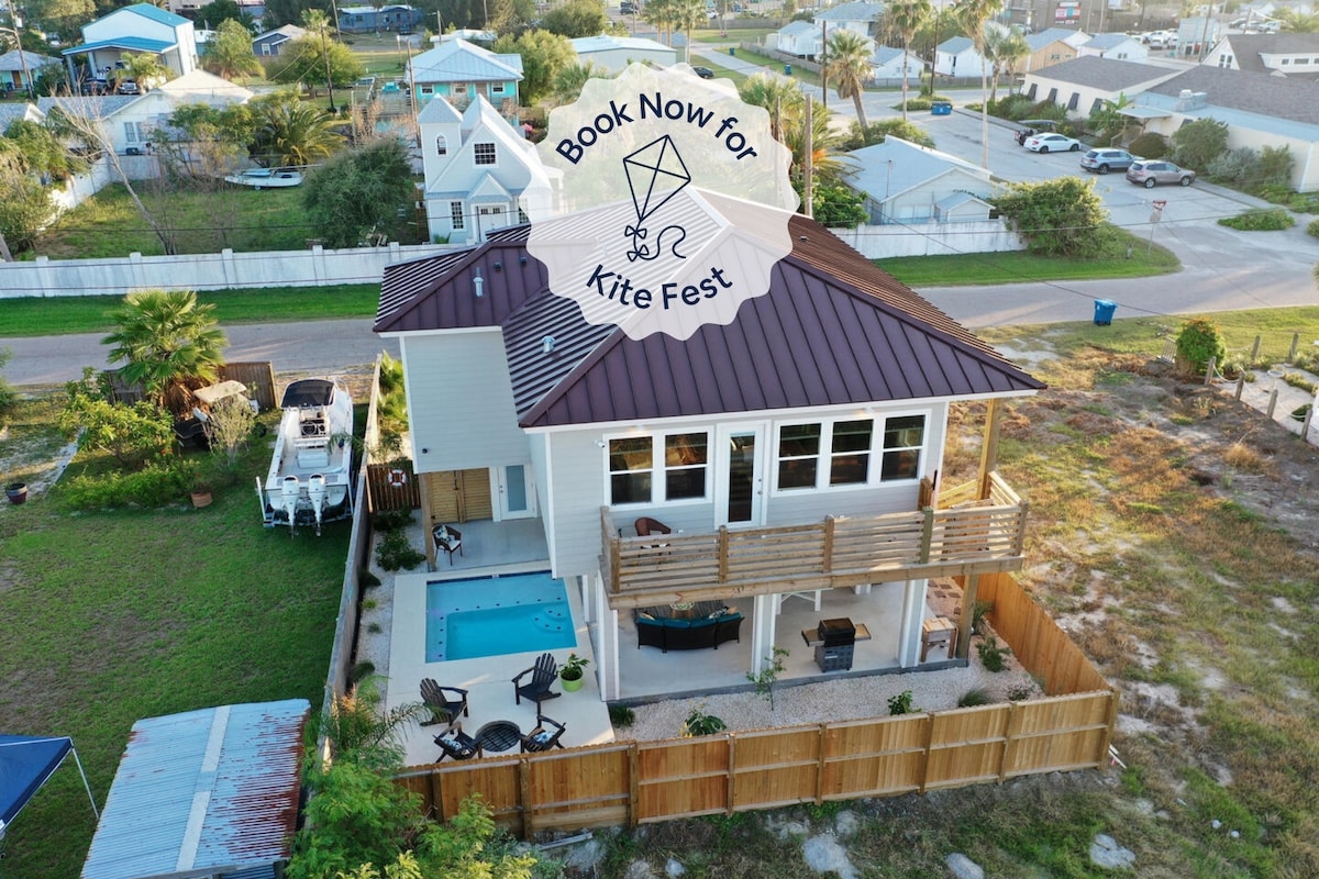 Willkommen in deinem Haus an der Küste! Spaziergang zum Wasser in der sonnigen Innenstadt von Rockport. Nette moderne Casita mit hochwertiger Einrichtung. 2 Schlafzimmer 2 Badezimmer Haus mit zusätzlichem Tagesbett. 3 Blocks zu Fuß zum Wasser mit leichtem Blick auf das Wasser von der hinteren Veranda. Zu Fuß erreichbar – 5 Blocks zu Cafés, Restaurants, Kunstgalerien, Weinbars und ein kurzer 1,4-Meilen-Spaziergang zum Rockport Beach. Perfekter ruhiger Kurzurlaub im angrenzenden Viertel an die Innenstadt, sodass du in der Nähe des ganzen Spaßes bist, aber Frieden und Ruhe zu Hause hast.