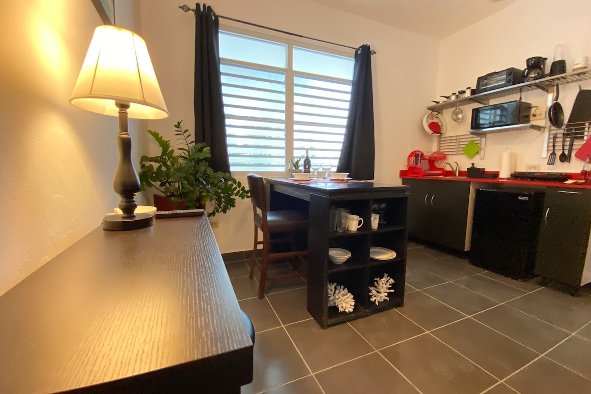 Wenn du auf der Suche nach einer erschwinglichen, gemütlichen, komfortablen und ruhigen Unterkunft suchst, die nur einen kurzen Spaziergang vom Strand entfernt ist, dann brauchst du nicht weiterzusuchen! Dieses malerische, niedliche Studio befindet sich auf der Terrasse/Veranda eines Hauses in einer sicheren, geschlossenen Wohnanlage, nur einen kurzen Spaziergang vom Strand entfernt. Sie liegt auch nur wenige Minuten vom hektischen Treiben der Loiza Street entfernt, dem aufstrebendsten Viertel der Stadt, mit seiner Fülle von Restaurants, Bars und Geschäften. Wir bieten Highspeed-WLAN und einen Selbst-Check-in.