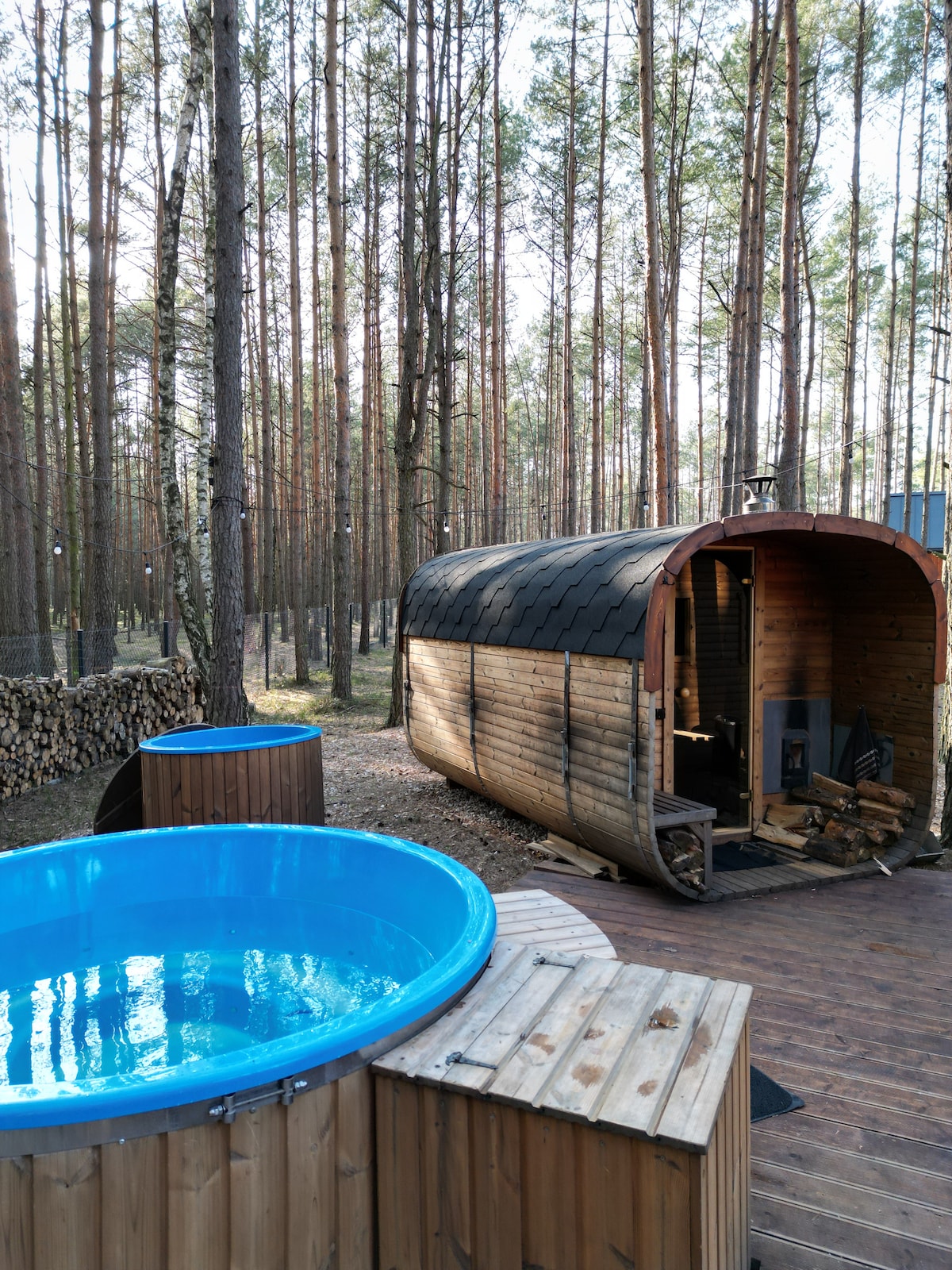 Hallo!🌲 Finde eine Pause vom Alltag in einem neuen Häuschen im Wald am See. Die Scheune ist für 4 - 6 Personen geeignet - es gibt zwei Schlafzimmer und ein Schlafsofa. Das Haus verfügt über eine gut ausgestattete Küchenzeile, ein Badezimmer mit Fußbodenheizung, ein Wohnzimmer mit Blick auf den Wald, einen großen Fernseher und schnelles Internet. Ein weiterer Vorteil ist das große Netz über dem Wohnbereich zum Entspannen. Neben der schönen Umgebung haben wir bis zu 11 Aktivitätszonen - Attraktionen, in denen jeder etwas für sich findet.