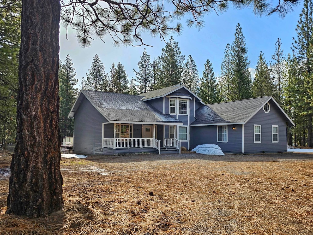 5 Betten, 2,5 Bäder, perfekt für große Zusammenkünfte, Skiausflüge, Familienausflüge oder ruhige Bergausflüge. Setz dich auf die Terrasse, umgeben von schönen Kiefern, mit einer Tasse Kaffee aus unserer voll ausgestatteten Kaffeebar. Am Abend kannst du S'mores an der Feuerstelle unter den Sternen genießen. Das Hotel liegt 5 Minuten von der Stadt, 25 Minuten vom Eagle Lake, 40 Minuten vom Lake Almanor und 1 Stunde vom schönen Lassen National Park entfernt.
